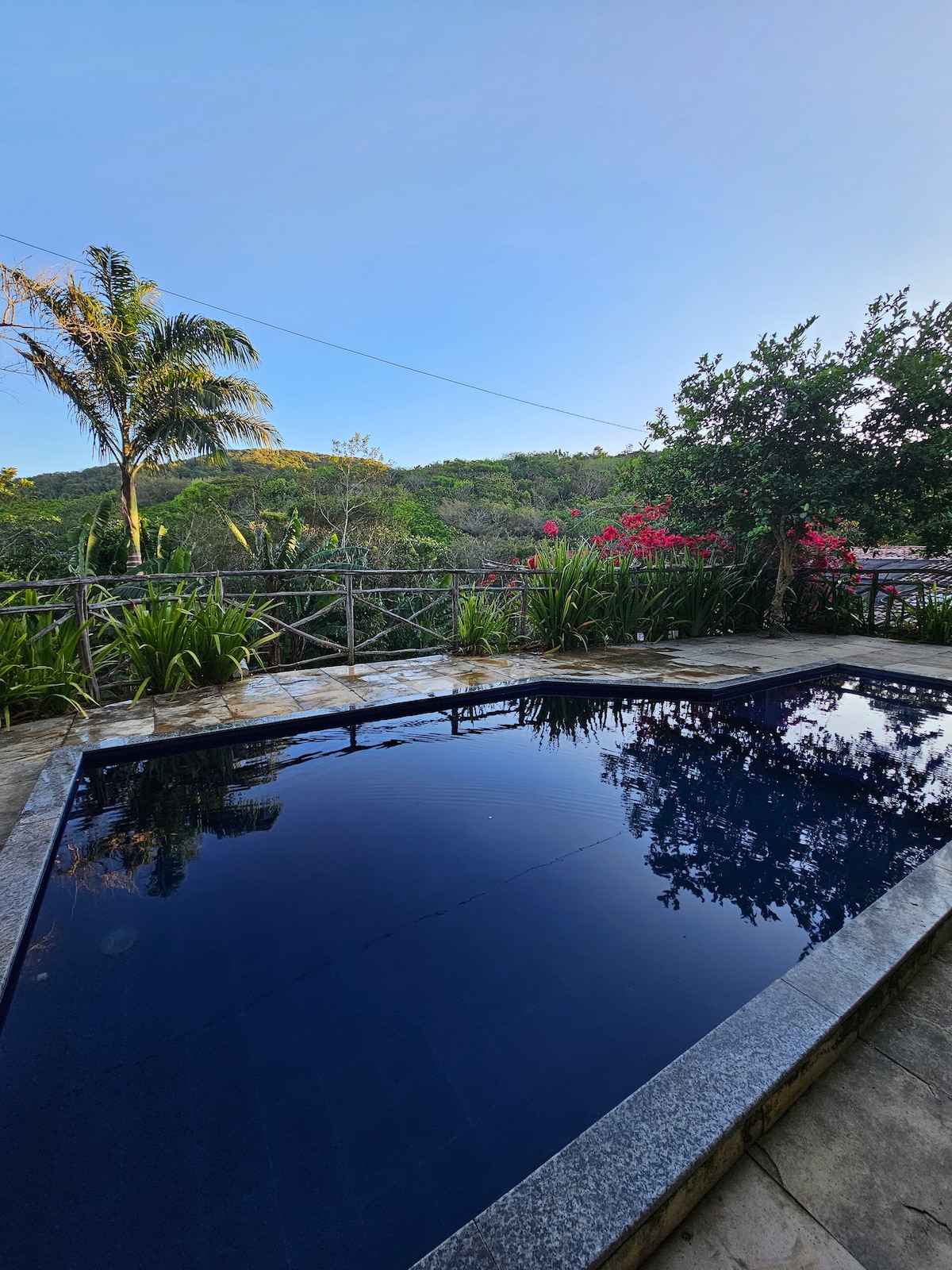 Our house is located 4 km from downtown Guaramiranga. It is a charming, clean house, without the smell of mold and surrounded by nature. The location is safe and quiet. We have a caretaker who lives on the premises, as well as a camera security system. It is our private infinity pool that I now make available so that people can enjoy this peaceful little corner. It has a barbecue, pizza oven and a small pool with hydromassage for up to 6 people.