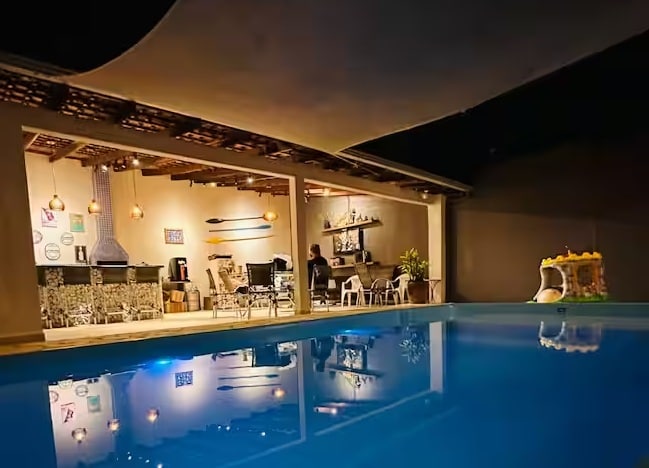 HIGH STANDARD PROPERTY with Heated Pool 32°C🌡️, 3 bedrooms, all with 12000 BTUs air conditioning (Only cold), 2 of them are suites, barbecue facing the pool, full kitchen, laundry, 2 parking spaces for medium-sized cars. PROPERTY ELECTRICAL VOLTAGE 110V. WE PROVIDE BEDDING, (Pillows with covers, sheets and microfiber blankets). WE DO NOT PROVIDE BATH AND FACE TOWELS. WE ACCEPT SMALL PETS.