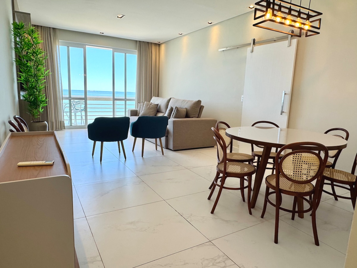 Right on the sand, beach right in front, just across the street. Daikin hot/cold air conditioning in the living room and 2 bedrooms, 2 bathrooms, ultra-fast WI-FI, LG 50" and Samsung 43" smart TVs. Large balcony, amazing beach view, table, chairs, hammock. High floor, bright, airy, best spot on the boardwalk. Ceiling or wall fan in all rooms. Full kitchen. Excellent location, do everything on foot: bakery, restaurants, bars, shops, banks, markets, pharmacies, shopping, etc. Beach service. 24-hour doorman.