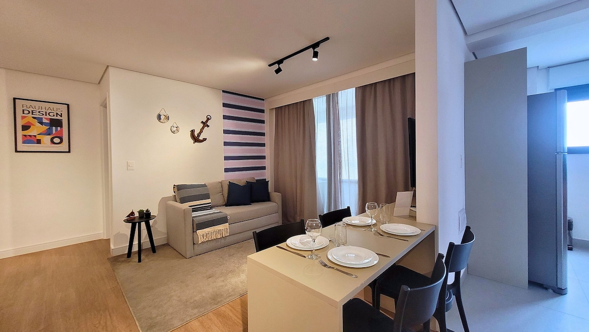Modern and comfortable apartment with gourmet balcony. Beautiful ocean views and wonderful sunsets. Apartment in a complete clubhouse condominium (swimming pool, games room for young people and adults, playroom, dry and steam sauna, gym, sports court, PET space and beach service). Flexible check-in and check-out times. We can accommodate up to eight people if needed.