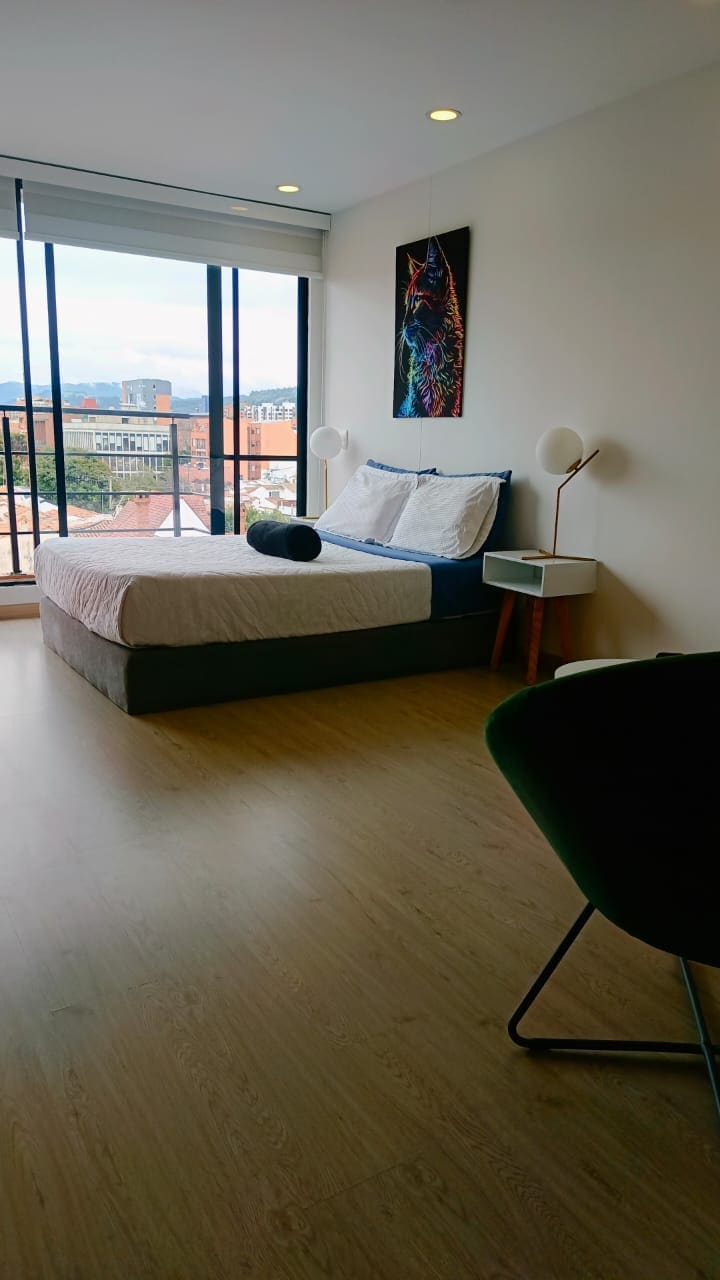 Rest in a quiet, modern loft with everything at your fingertips. In Cedritos, you'll have parks, cafes, and shopping centres within walking distance, with easy access to transportation. Ideal for disconnecting without leaving Bogotá. The building has a gym, coworking, BBQ terrace and 24/7 security. Enjoy fast WiFi, a fully-equipped kitchen, and a comfortable bed in a space designed for your comfort. Book and experience comfort and location in perfect harmony!