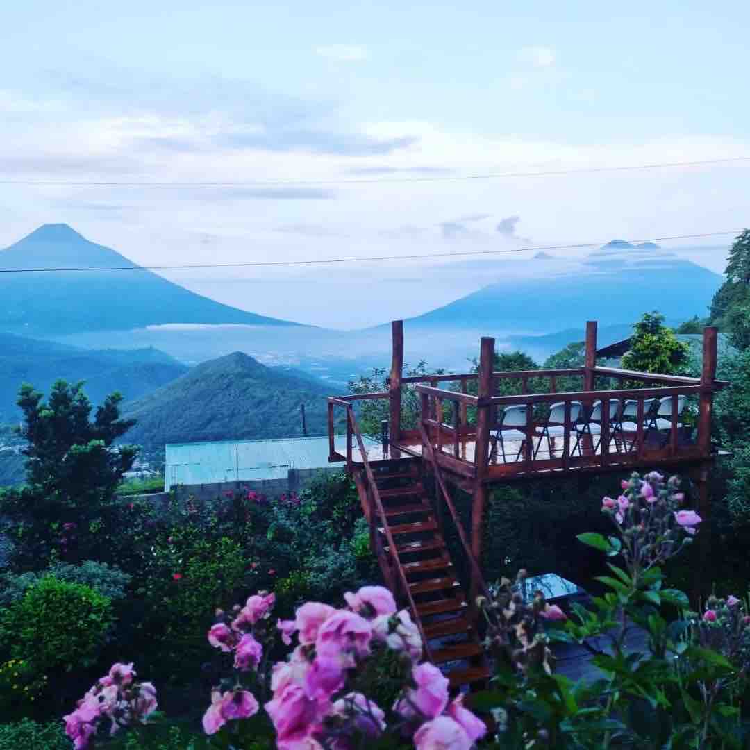 It is a cabin / house surrounded by nature, trees and flowers. It has a spectacular view of the volcanoes and forests. Features a large parking lot and a half-block garden. Camino al Hato where you will find many amenities such as Hobbitenango, Earth Lodge, Antigua Boreal among others. We are at the beginning of the entire tourist strip. The house comes with everything you need for short and long stays. You can go hiking. 24/7 security.