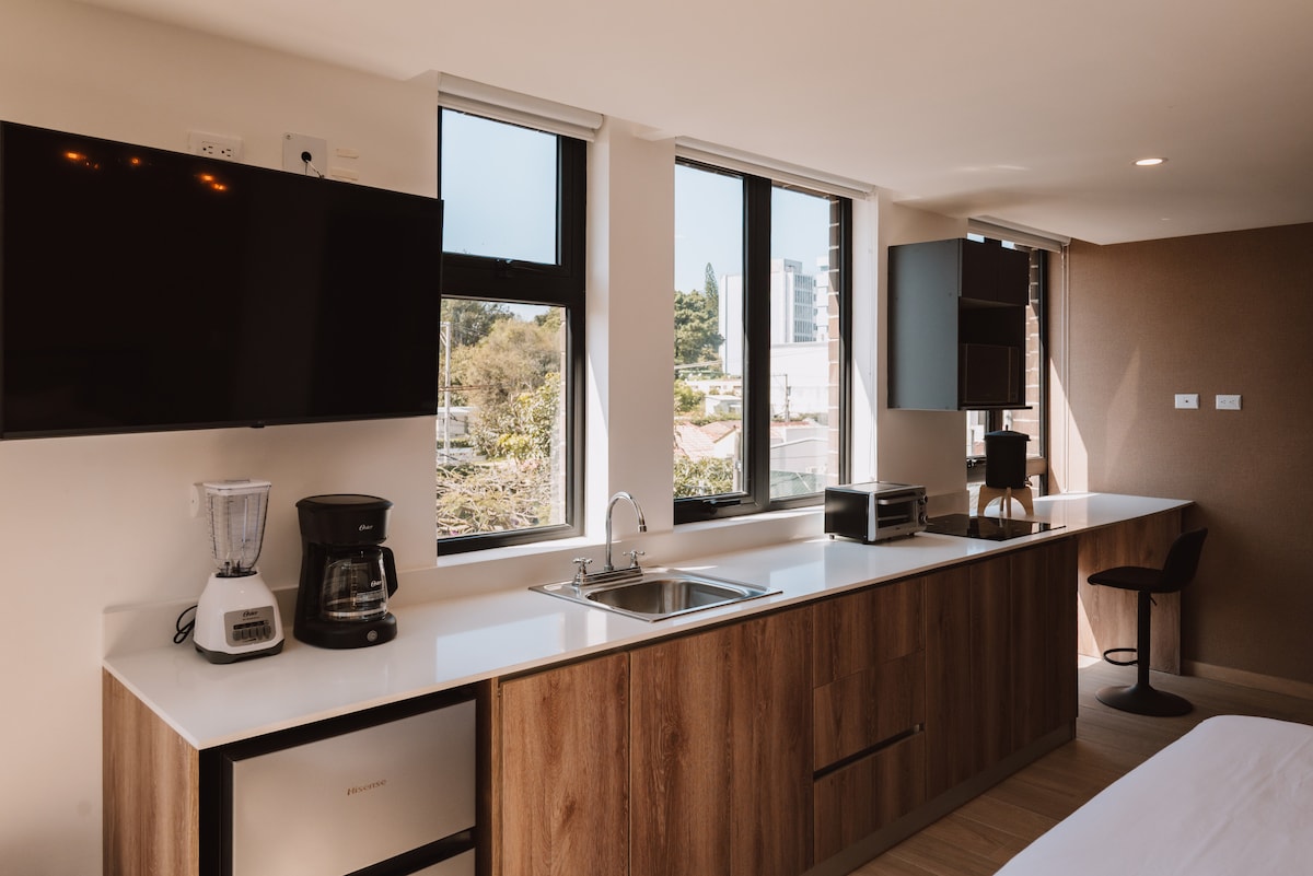 Enjoy a beautifully located apartment in Guatemala City. H Group Residences presents its new “Safari” apartment in a brand-new building facing the majestic volcanoes (Agua, Fuego, Pacaya) and only 10 minutes from the airport. Every detail has been carefully designed to create a warm and enjoyable stay. Browse the photos and imagine yourself unwinding in this charming and inspiring space.