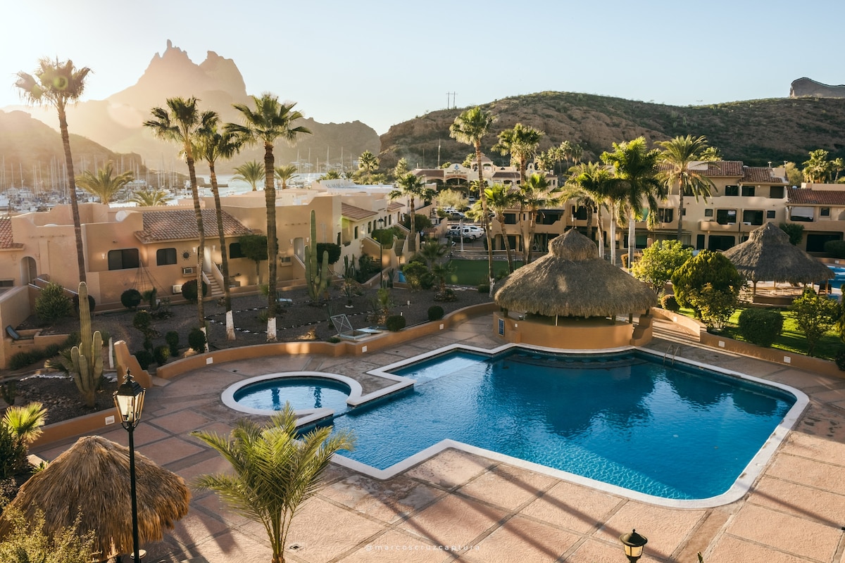 Condominium with a remodeled kitchen, fully equipped and ready to enjoy the beautiful views of the sunset, Mar de Cortez and Cerro Tetakawi. Access to Playa Los Algodones, swimming pool, and facilities at the Playa Blanca property.