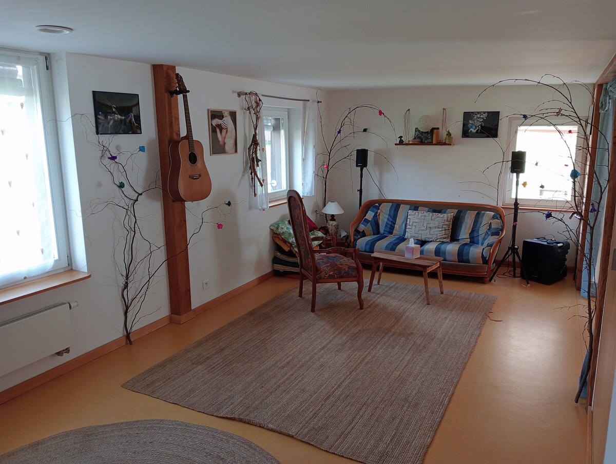 Very nice studio tastefully furnished in the attic of a typical Alsatian house, very quiet. The mezzanine room is accessible by a ladder. A large shared terrace allows you to enjoy the sun. Perfect location to visit the vineyard, its cellars, Christmas markets... Free parking 200 meters from the house. Gueberschwihr has a remarkable climbing site.