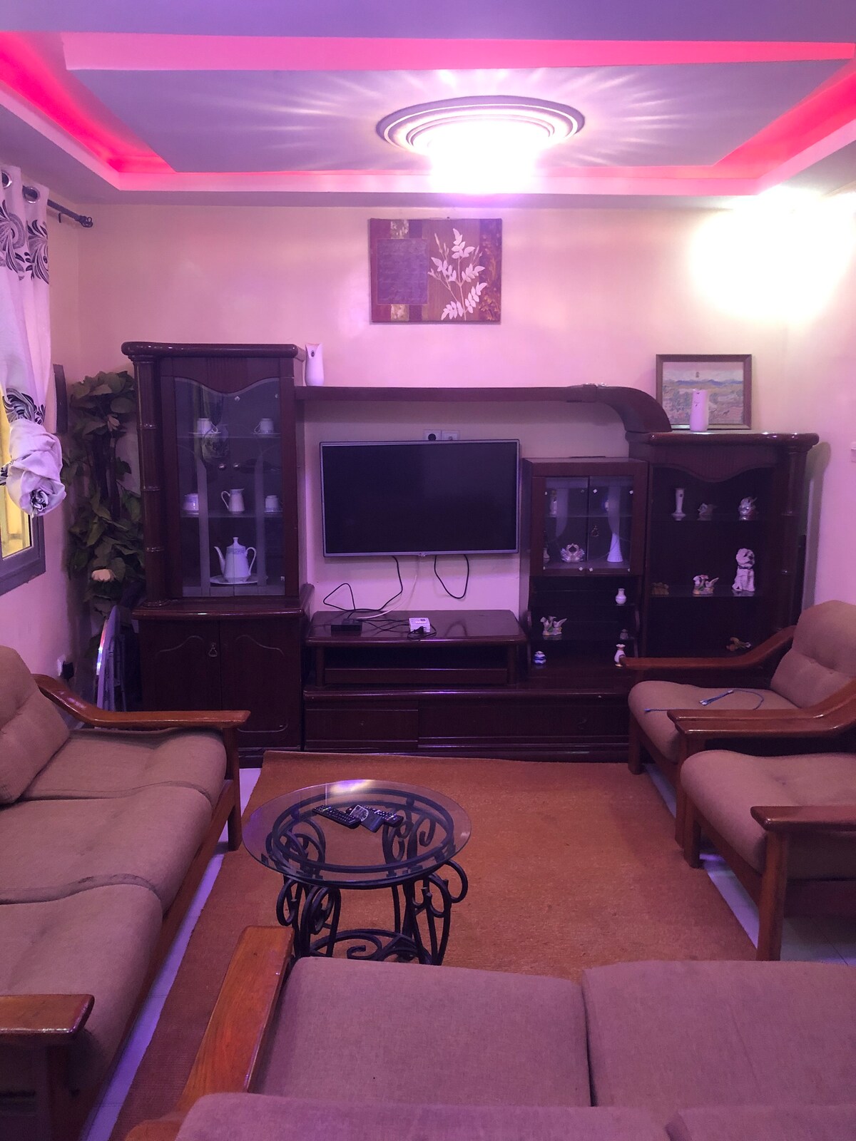 Fatastou is well furnished over 150 m2. It includes: Three (3) bedrooms, with beds and wardrobes, one of which is air-conditioned and the others with ceiling fans. Three (3) bathrooms. Very well-equipped kitchen, very well-equipped living and dining room, furnished balconies. Family space provided. You also get: Bedspread and sheets regularly changed in the 3 bedrooms, soap, toilet paper, napkins, dish soap, dishes, TV with channel subscription, Wi-Fi