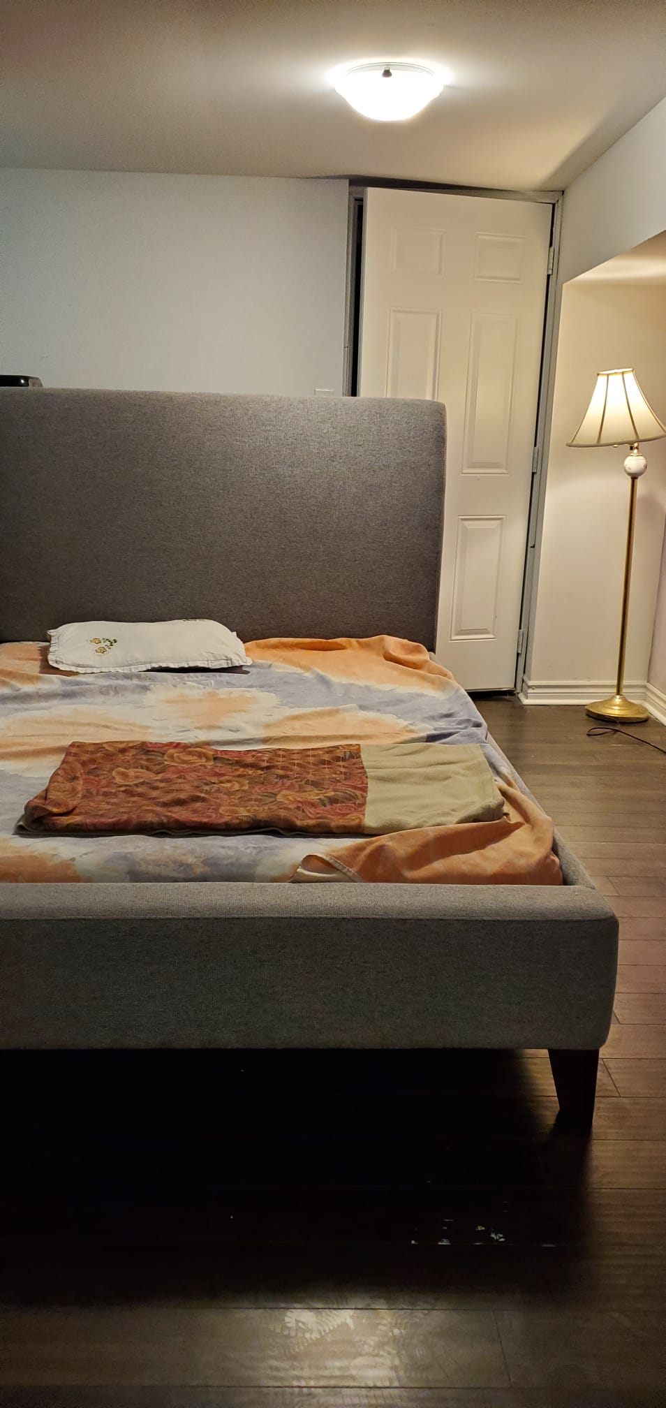 Private room in Basement for vegetarians. it's a big hall with a bed and table along with two chairs and a closet. Refrigerator is on first floor. Washroom in sharing. Please note we don’t have gas stove for cooking. Parking is extra ($5/day) No smoking or alcohol. Booking available only via Airbnb.No personal contact number please