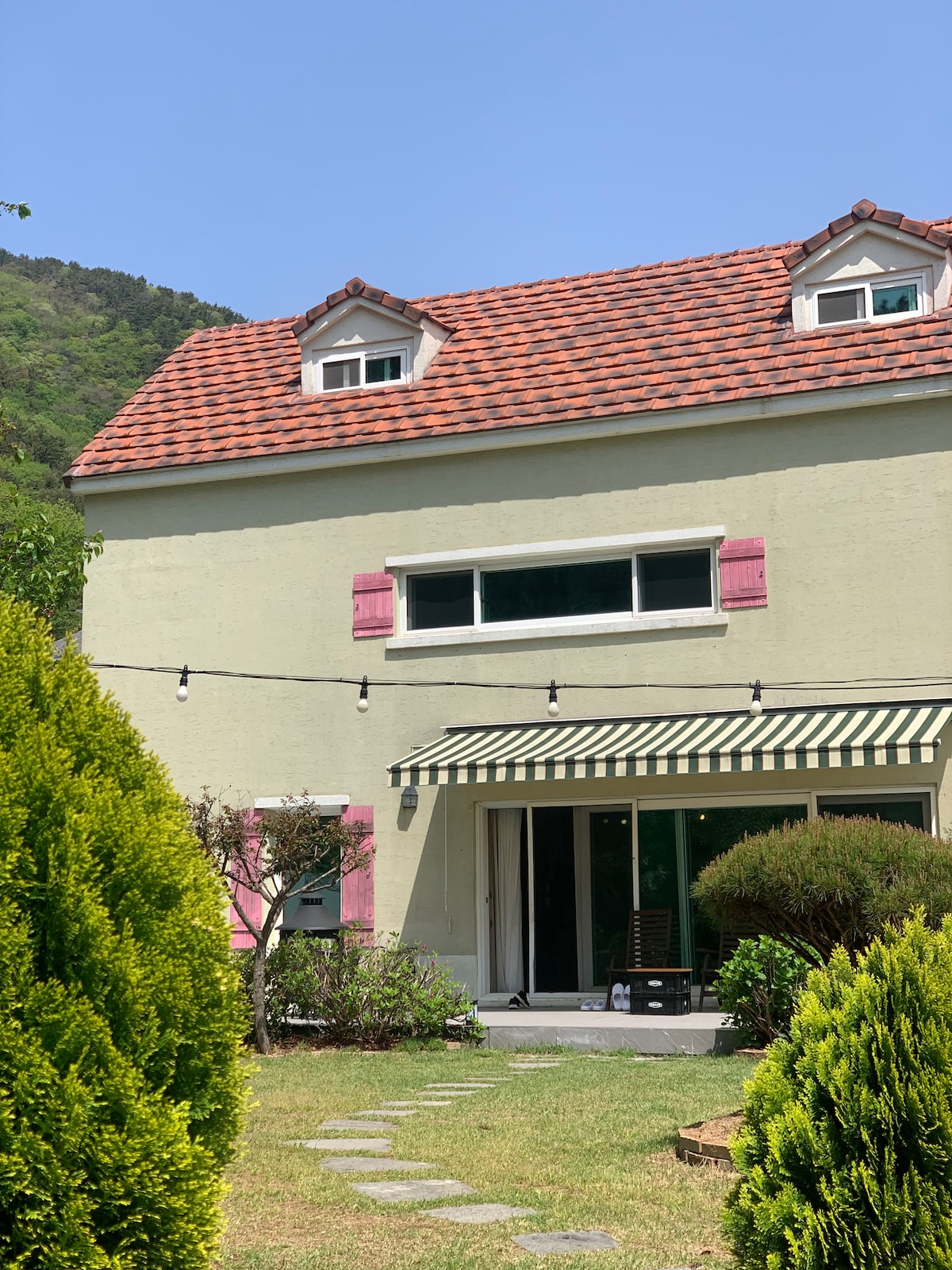 This is an annex of a single-family house located in a quiet single-family house area. There are 2 small dogs and pond carps in the spacious lawn kennel! You can have a barbecue in the lawn yard and have fun in the underground karaoke room. (It is equipped with air conditioning.) The morning view is so pretty. A cup of coffee while enjoying nature at a quiet and peaceful yard table. . . Various flowers continue to bloom. In the wide field behind the building, the rice plants that change from green to yellow according to the season are also worth seeing^^ *Check-in - 4:00 p.m. (luggage storage available from morning) * Check-out - 12pm * Barbecue charcoal fire-20,000 KRW (It is possible if it does not rain heavily, and in winter, we will provide a windbreaker and a heater.) * Underground karaoke-Rules of use -Price: 10,000 won unlimited (new song update every day)/non-smoking area/no alcohol, beverages, or food. *Water purifier, air conditioner, TV, electric cooktop, electric kettle, coffee machine, iron, microwave, washing machine, toaster, fridge, rice cooker, shampoo, conditioner, body wash, and towel are provided.