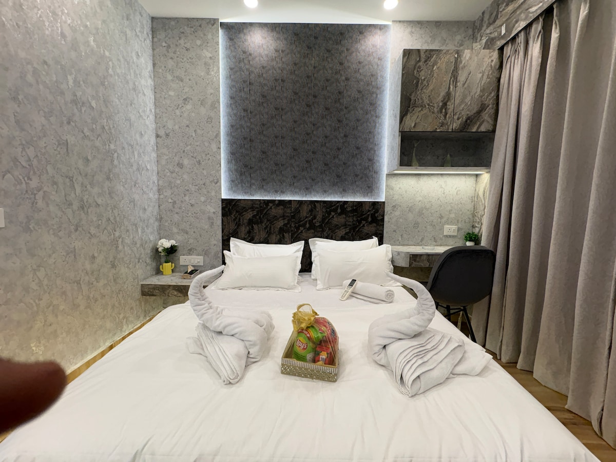 Welcome to Trovero Suites Nestled in the heart of Greater Noida, Near Expo Mart (8 km) ✨ What You’ll Love: ✔ Private Balcony – Enjoy the Mesmerizing scenic view ✔ Prime Location – Close to top attractions, restaurants ✔ Modern Comfort – A beautifully furnished space with a comfy bed, cozy seating, and stylish decor. ✔ Fully Equipped Kitchen – Cook your favorite meals with ease. ✔ Fast WiFi & Smart TV – Stay connected and entertained. ✔ Serene Ambiance – A peaceful Luxurious and private retreat