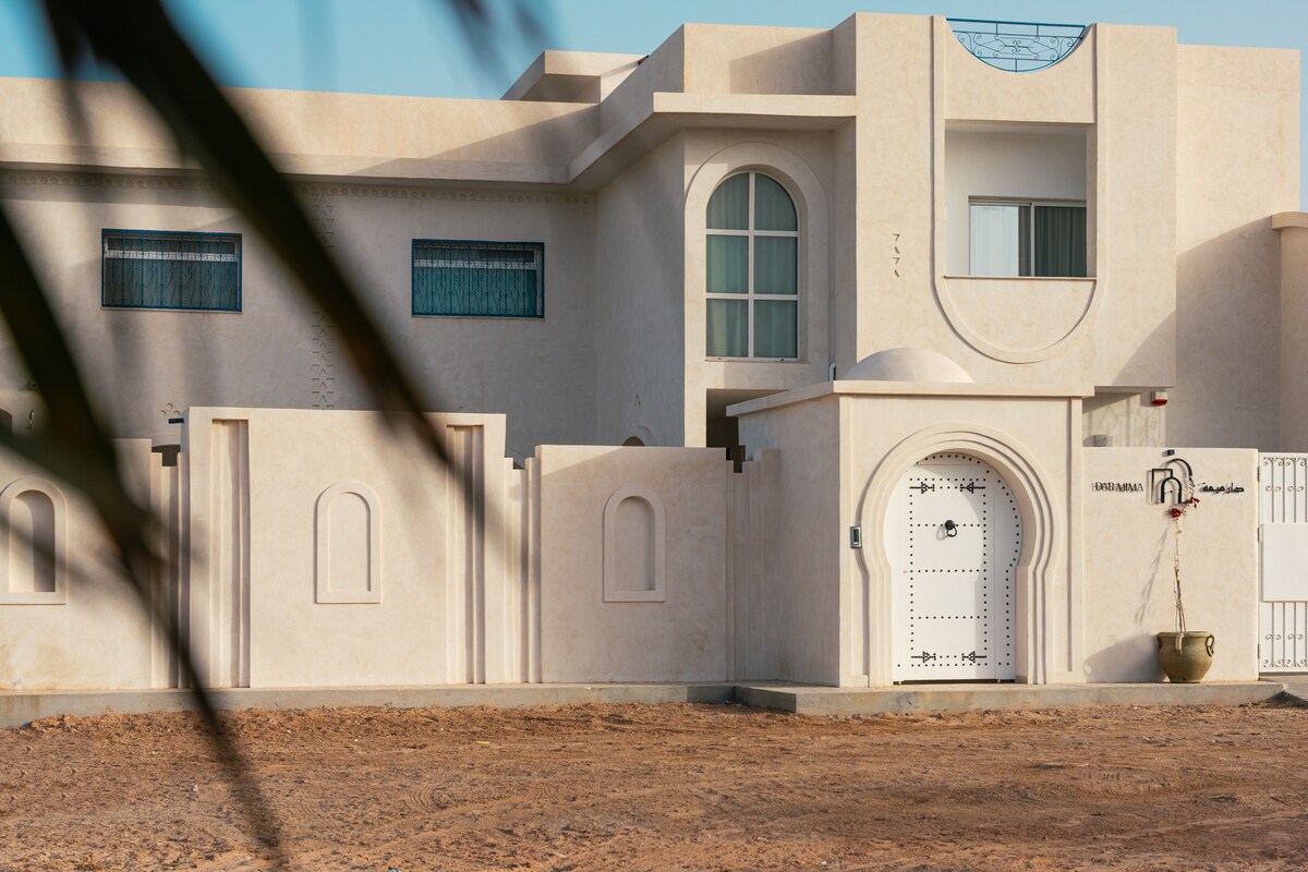 Dar Mima, a luxurious villa in the heart of Djerba, is a testament to craftsmanship and elegance. With a blend of Djerbian tradition and modern flair, it offers a serene escape just 700 meters from the beach and 100 meters from the golf place. In minutes, guests can reach vibrant discos, the Aqua Park, and more. Experience the charm of Dar Mima and uncover the essence of Djerba.🌴