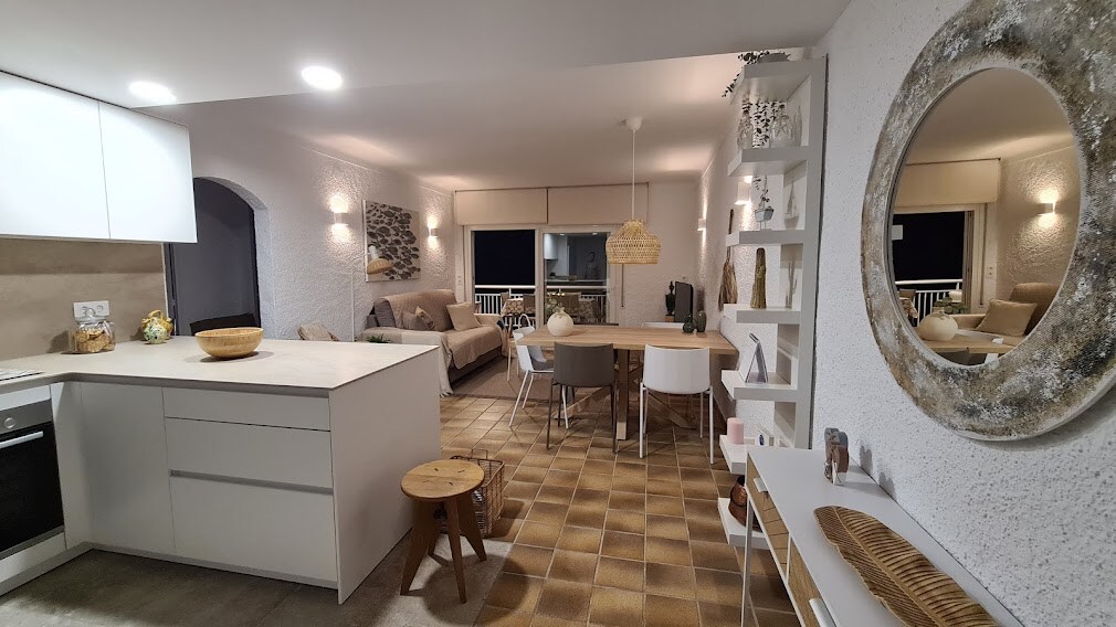 A nice oceanfront apartment to relax with your family or friends on vacation in Costa Brava. It has a community swimming pool and parking in front of the apartment. There is a 160cm double bed and a 140cm sofa bed. It has Wi-Fi and a smart TV. Fully equipped kitchen with oven, dishwasher, coffee maker, microwave, toaster and kettle among other things. Towels and sheets are included in the rate.