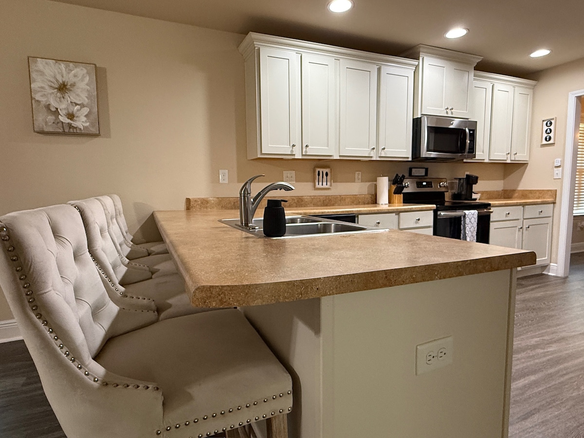 This airbnb is conveniently located 15 minutes from Gulf Shores beaches and a mile from the Tanger Outlet’s. It's only a 5-minute drive to OWA theme park and in close proximity to The Wharf. This home offers a backyard movie projector and screen, as well as a cozy firepit. You can enjoy the patio and privacy fenced-in yard, along with a grill and basketball goal. Each room has access to Netflix and Hulu. Enjoy complimentary coffee. Family fun games are also provided. Have a wonderful stay!