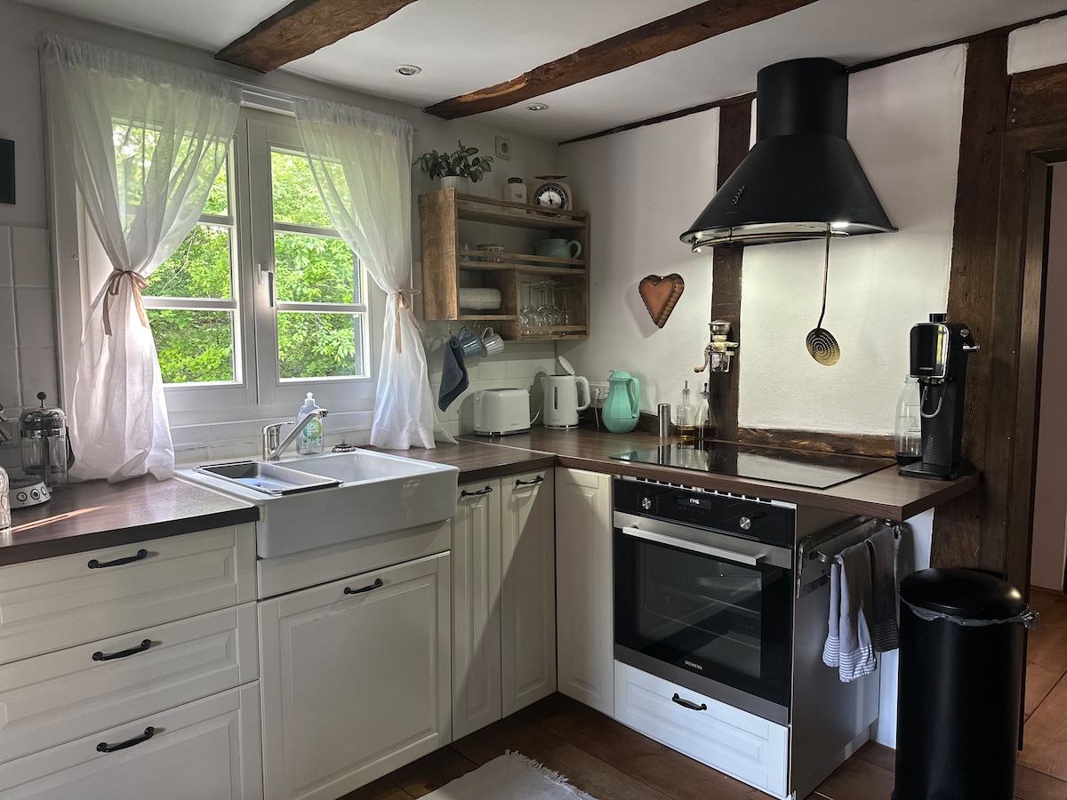 Time out from everyday life in our historic accommodation. Idyllic secluded location on the edge of the forest. A car is needed as there is no connection to public transport. Wiehl center is about 3 km away with various shops, bakeries and restaurants. Heating is provided by radiators connected to our heat pump, which is powered by green electricity. In winter, a fireplace provides a cozy atmosphere. Modern Internet connection, TV via satellite system. Sparkling water maker available