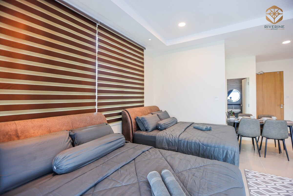 Welcome to our newly refurbished unit, proudly presented by ARTIZAN Management - The Pines@Riverine Resort. Biggest highlight of our unit: private breathtaking views of both Sarawak River and the town of Kuching. Located in the city centre, our space boasts brand-new furnishings, and offers a blend of comfort and style, perfect for a big group of family and friends travelling together. With refreshing breezes that sweep through, we hope you love The Pines as much as we did while curating it!