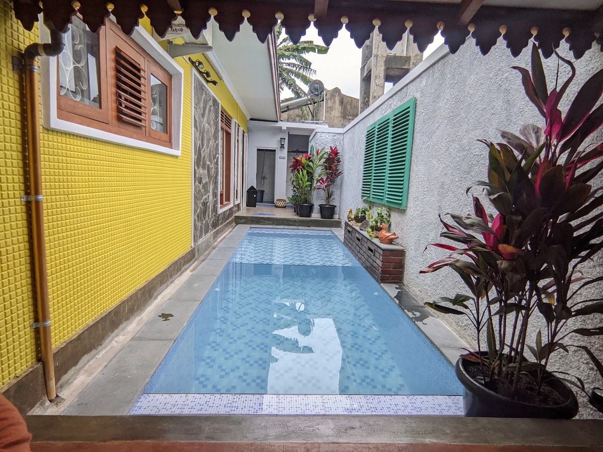 Again.. we share with you unforgettable place, our staycation unique house with traditional style and pool. this is the yellow ones. it is on main street of Prawirotaman street and acceptable with car, you can parking it cozy. Of course it's near with some tourist areas, such as tempo gelato, mediterania cafe, Tirtodipuran street cafe, malioboro, Kraton tourist area, etc.