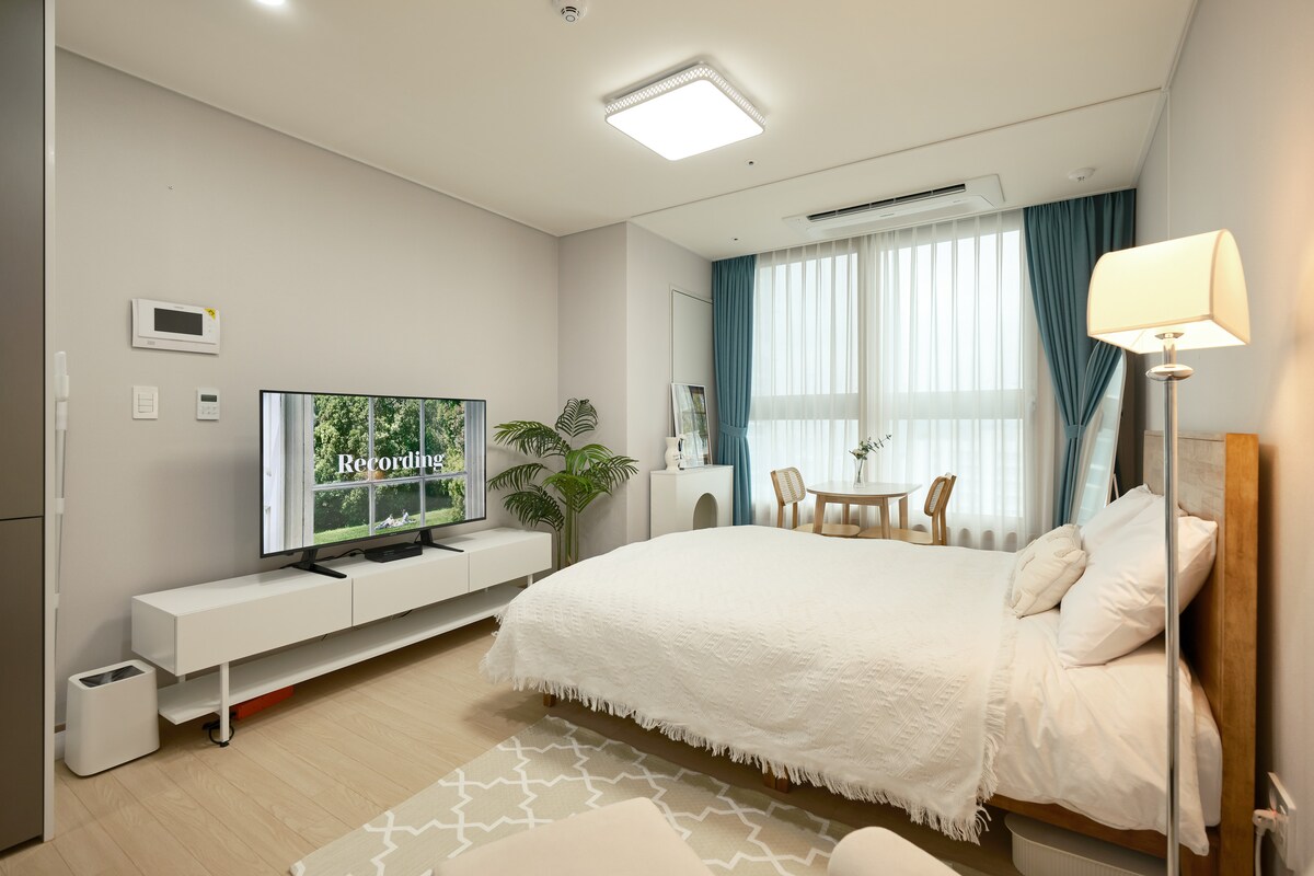 Open in 2023 This is a full-option residence - Non-Contact check-in [Bedroom] - a queen-size bed [Kitchen] - a variety of easy-to-cook cooking utensils - refrigerator, microwave, electric kettle - Washing machine, laundry detergent *we don't provide any condiments. [Bathroom] - Shampoo, hair conditioner, body wash - Hair dryer, towel - It's a bidet in the room *We do not provide disposable bathroom products (toothbrushes, toothpaste, etc.) * You can park in the building for a fee.