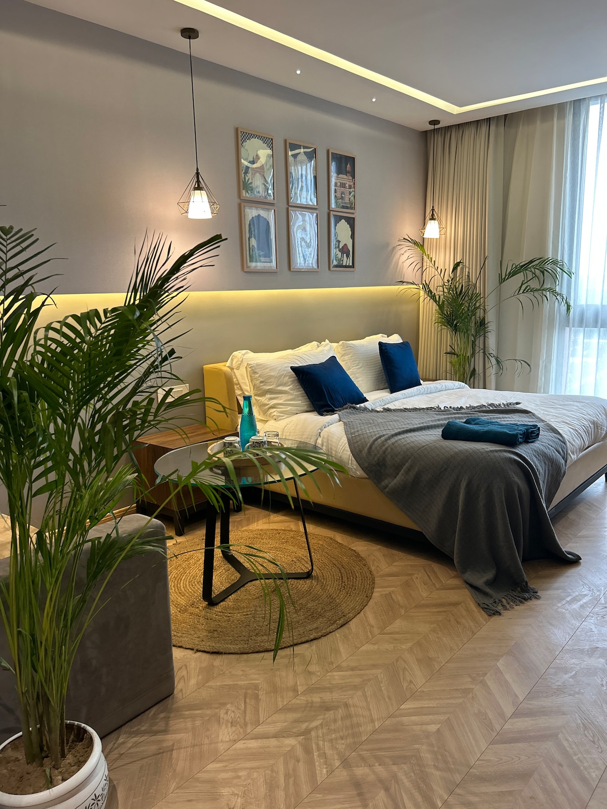 Welcome to Bridgerton, a bright studio at AIPL Joy Street in Gurgaon. You’ll have Room Controlled Central AC, fast Wi‑Fi and a large smart TV with all the OTT streaming apps. The kitchen comes with a fridge, microwave, fine cutlery, chic dishware, and premium linens for bed and bath. When you step outside you’ll have INOX theater, Sodhi’s Market, Blue Tokai, Poiz and Café Delhi Heights and many other premium cafés on ground floor of the building. Perfect for work trips or weekend getaways.
