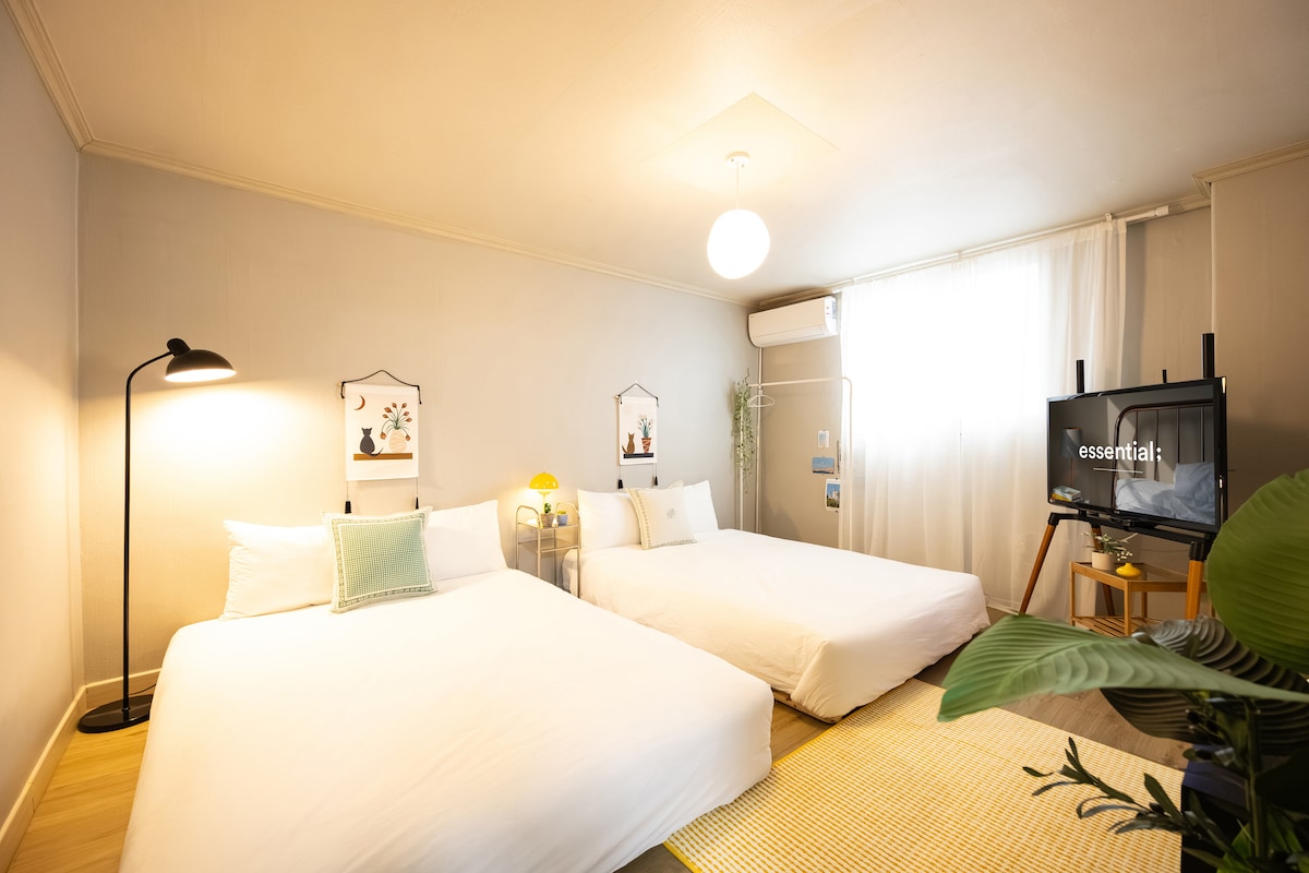 Start your Seoul trip at Cozy Sienna – a warm, stylish stay perfect for families and friends! Kids love our green hammock chair, and the nature-inspired decor adds extra charm. 🚇 Located near Line 2 subway for easy access to Gangnam, Hongdae, sungsoo … 🌟Guests say: “More comfy than 5-star hotels with great amenities!”-Jieun “Cleaner and fragrant, with caring touches.”-Ella 🌷 Free Han River picnic set: rattan basket, mat, wine glasses, table & bubble camera! 🍿Free popcorn & Netflix incl.