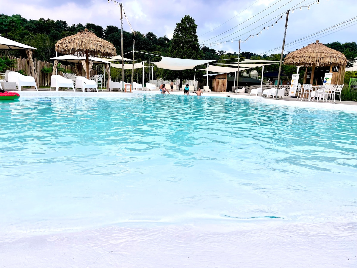 The forest cabin, which is connected to the beautiful forest and the first-class water valley in Yangpyeong, 30 minutes from Seoul, is decorated with a theme for healing, such as a leisurely walk and peaceful reading on a large plot of 2,000 pyeong to provide a comfortable and stable rest. In summer, you can enjoy water play and fantastic trekking in the valley right in front of you, and the swimming pool filled with valley water also has an excellent view. In particular, the cabin, a hand-made log house, offers a subtle wooden scent as well as a comfortable and comfortable bed. Take care of your body and mind, tired from stress in the city, with fresh air and good energy from the forest full of phytoncides, and indulge in a trip just for you.
