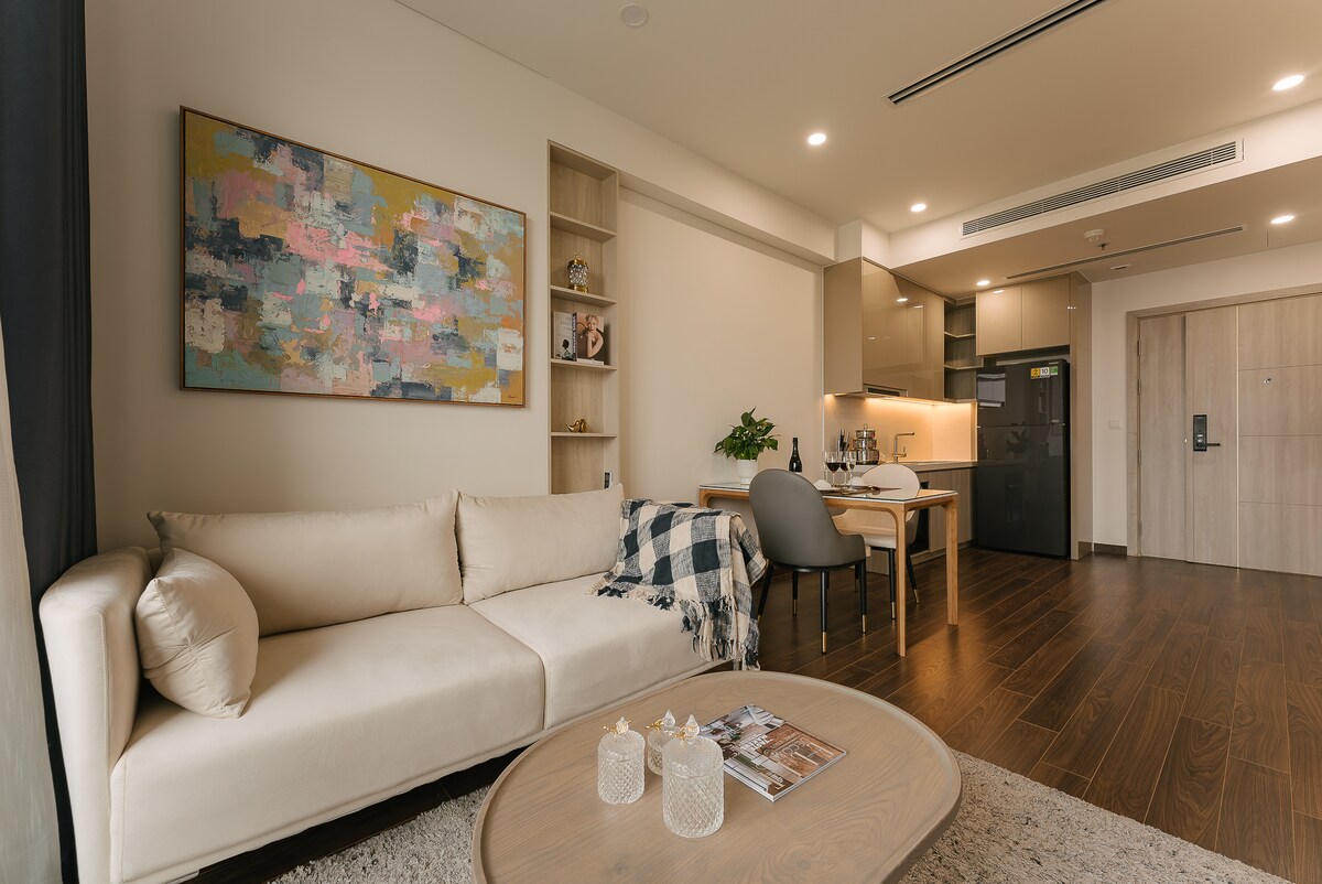 📍 Prime location: •5 mins walk to the elevated train station, super fast access to the center • Convenient supermarket below •Near Aeon mall Ha Dong, Thien Van Hoc Park 🏠 55m² apartment with modern design, fully furnished: •1 private bedroom, 1 cozy living room • Fully equipped kitchen, TV, air conditioner – just bring your suitcase in 🔐 Private & convenient: •Flexible, discreet check-in and check-out •Suitable for couples who want private space, short/long business travelers