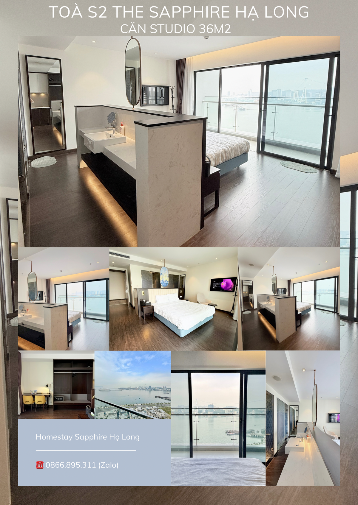 The Sapphire Ha Long – Premier Bayview Suite - Located in the S2-Sapphire Halong complex, right in the heart of Ha Long city. - Cozy & Elegant: Corner unit on the 27th floor, featuring 2 bedrooms & living area, all with stunning views. - Breathtaking Views: Step onto the balcony to enjoy sunrise over the bay and charming fishing ports. - Full Amenities: Aircon, Wi-fi, TV, fully equipped kitchen, swimming pool, and secure parking for a comfortable stay. Convenient: Near center city_5' to museum