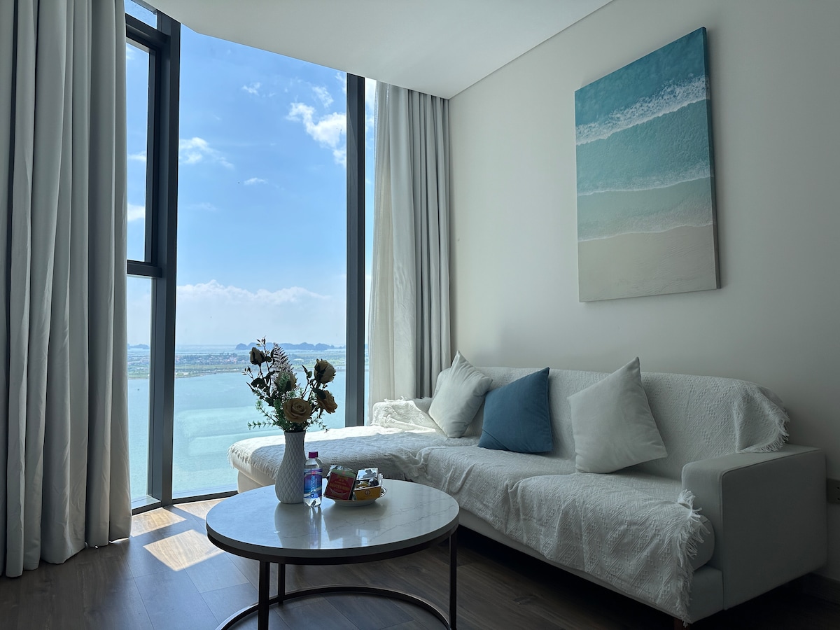 This is a beautiful apartment located in the A La Carte Ha Long building, the tallest building situated right by the beach. An ideal place to relax with a sea view. A productive workspace with a desk, WiFi, and full amenities in the apartment. You can conveniently reach the following locations: • 1-minute walk to the beach. • 5-minute drive to night market. • 10-minute drive to the city center, Quang Ninh Museum .... The room rate does not include breakfast, swimming pool, or gym fees.
