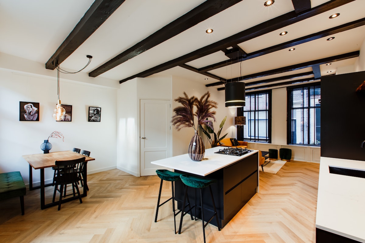 This bright, spacious and stylishly furnished apartment is ideally located near the station and city center in a quiet street. The roof terrace that is surrounded by greenery is an oasis of peace in the hustle and bustle. The two bedrooms with queen size bed and two single beds together with the high ceilings and many windows make the apartment feel spacious and bright. Whether you want a day in Amsterdam or to the beach, both are easily accessible by public transport. This apartment has everything you could wish for.