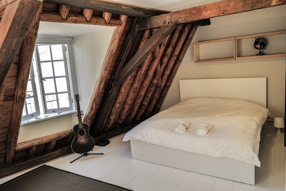 Cool trendy studio/big open space room , with direct access to the terrace, situated on the first floor of our well decorated traditional Dutch family home. Bike to the beach or walk to the nice historic center of Haarlem! Relax on the nice roof terrace. Parking is free and railway station to every city in the Netherlands is nearby. Big kitchen and livingroom downstairs are shared and can be open up on request. Studio & it’s kitchen and terrace is private for you.