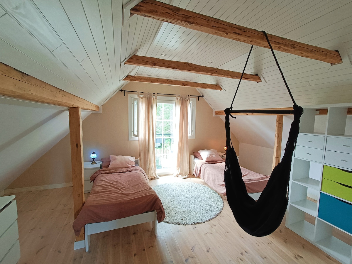 Cute studio upstairs of a wooden house + parking space