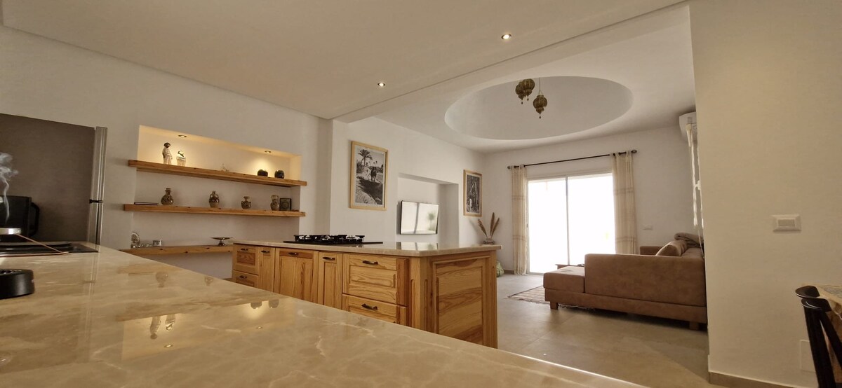 🌴 Welcome to Villa Eden – Your peaceful break under the Djerba sun ✨ The spaces • 190 m² of modern and refined comfort • 3 large suites with premium bedding • 3 bathrooms, 🌿 The garden and pool • Secure private pool • Terrace with outdoor lounge and deckchairs • Barbecue area for your friendly meals 🏡 Amenities • Fully equipped kitchen (oven, microwave) • Air conditioning in all rooms • High-speed WiFi • Washing machine
