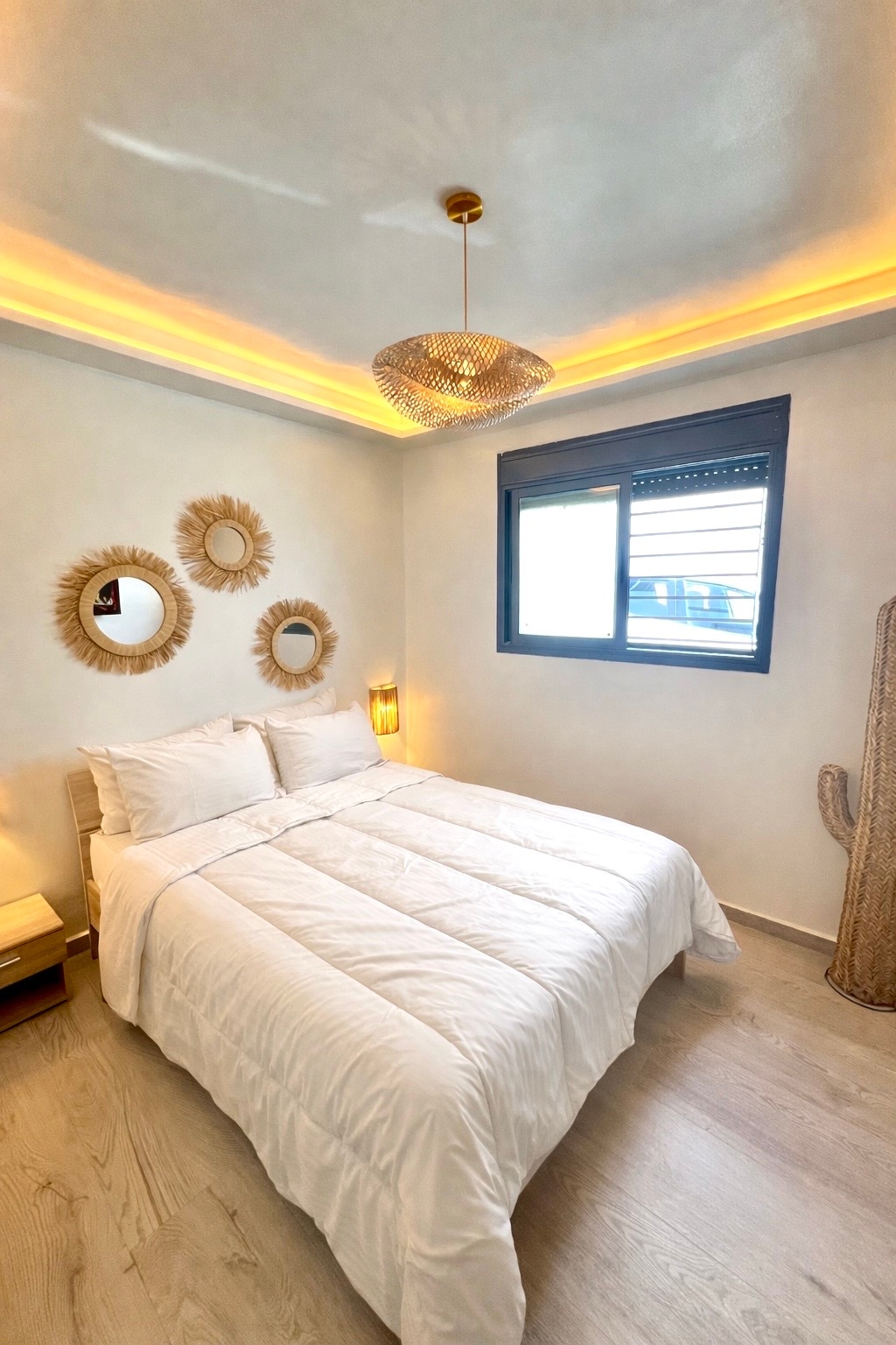 This accommodation has a style all its own. This little gem enjoys exceptional calm in Tangier next to the famous diplomatic forest and Sidi Kacem beach This apartment is reserved for married couples and families and single people. It is a non-smoking space reserved for calm and respectful people and I would be grateful if you take care of its equipment and decoration made with love