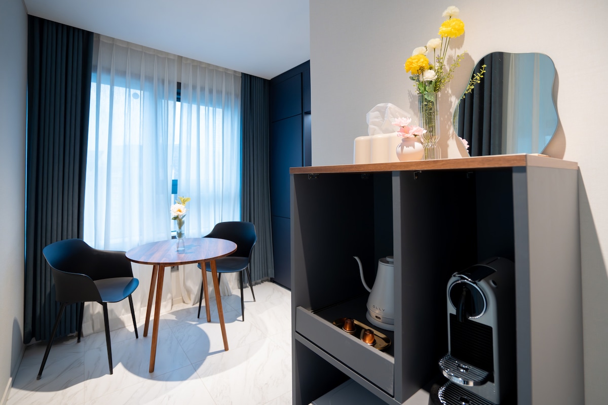 ♥︎ It is a 1-minute walk from the beach, and there are many restaurants nearby, and it is convenient for sightseeing as it is located in the center of Haeundae. ♥︎ 7 minutes to Dalmaji-gil. 7 minutes walk to Haeundae Market, Dongbaek Island, and The Bay ♥︎ You can enjoy the beautiful night view in the evening from the city view in front of Haeundae Beach. ♥︎ It is located 10 minutes away from Haeundae Subway Station, making transportation convenient. You can have a comfortable trip with a clean and pleasant room♡