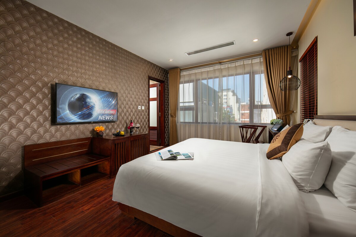 With a modern and luxurious design, the Executive Room at 𝑴𝒊𝒅𝒐𝒓𝒊 𝑩𝒐𝒖𝒕𝒊𝒒𝒖𝒆 𝑯𝒐𝒕𝒆𝒍 𝑯𝒂𝒏𝒐𝒊 Hotel will bring you a comfortable and elegant resting space, where visitors can leave all the worries of life to enjoy peaceful and deep moments The room is furnished with 1 large double bed or 2 small single beds depending on the customer's request, just leave us a message Buffet breakfast is served free of charge