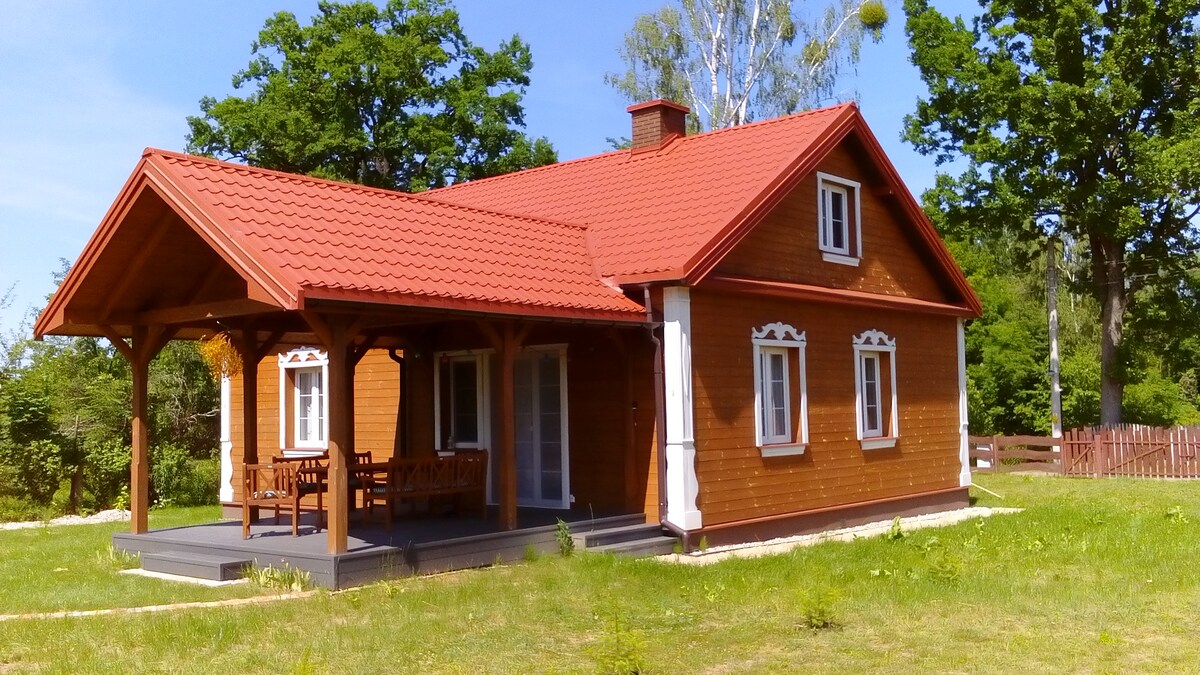 A traditional, wooden house in the countryside with a large fenced yard and a beautiful garden, located right next to the Białowieża Forest. There are bike trails, kayaking, and other attractions of the region nearby. There is a fire pit, barbecue, and garden furniture for relaxation on the property. The house is fully equipped for up to 9 people. Downstairs is the bedroom, living room, kitchen and bathroom. Upstairs, there are 2 double bedrooms with the possibility of an extra bed and a bathroom.