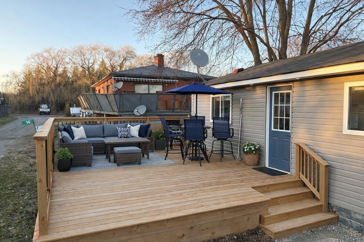 Private waterfront property with large front lawn for activities. Muskoka chairs and a hammock for relaxing afternoons, plus 800 square ft deck, well lite with pot lights for night entertaining. Direct access to private 144 ft sandy waterfront, kayaking and canoeing. 7 min drive to golf course, 5 minutes to provincial park with a beach. 7 mins to the town of Dunnville with grocery stores, pubs, restaurants and so much more!!! It’s a perfect getaway to create memories with family & friends