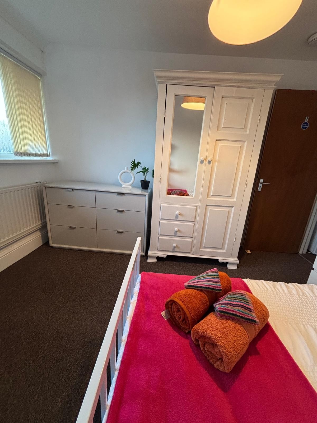 Stylish 4-bedroom home in Hall Green, Birmingham. Perfect for families or groups, featuring 2 modern bathrooms plus a convenient downstairs toilet. Enjoy a spacious garden, ideal for relaxing or entertaining. Great transport links nearby for easy access to the city. Stay connected with fast WiFi and unwind with Netflix on cozy evenings. A comfortable, well-located base for your Birmingham stay.