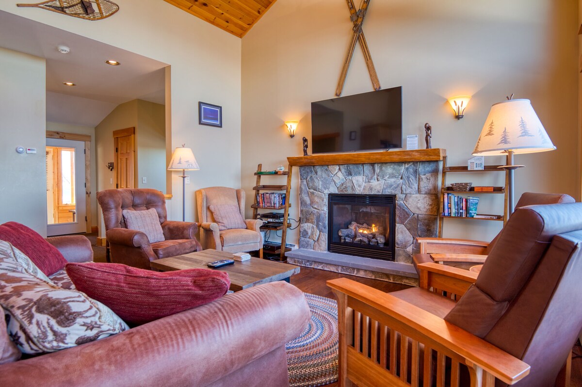 • Perfect for small families or couples, our signature A-Frame cabin features a modern interior gas burning fireplace, soaring ceilings, huge windows, stylish interiors, and all the comforts of home. • This cozy 1,100 square foot space comfortably accommodates up to four guests in two bedrooms (one with a King-size bed and the other with a Queen-size bed) and a shared bathroom. • 7 minute drive to downtown Freeport. • Proud to be ranked in the top 1% and voted Guest Favorite!