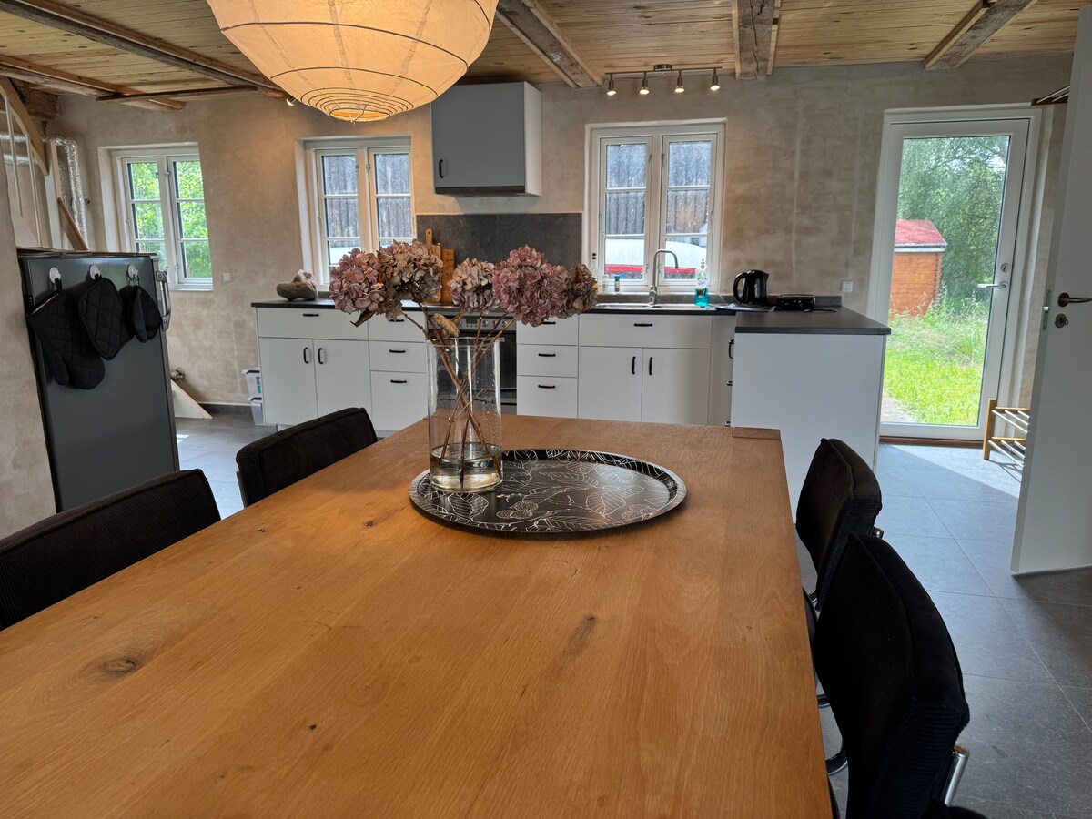 Skoven som nabo og udsigt over markerne. Det perfekt fristed langt fra larm og os, tæt på strand og aktiviteter. Der er 4 soveværelser og en rummelig hems. Der er et stort badeværelse, samt et toilet som tilgås udefra, med tilhørende udendørsbrus. Køkkenet er et snedkerkøkken med Miele hvidevare. Hop i vildmarksbadet og en tur i saunaen. Huset har i alt 5 trådløse højtalere. I hjørnet af haven er der anlagt en bålplads med en gynge hvor hele familien kan lave snobrød over bål