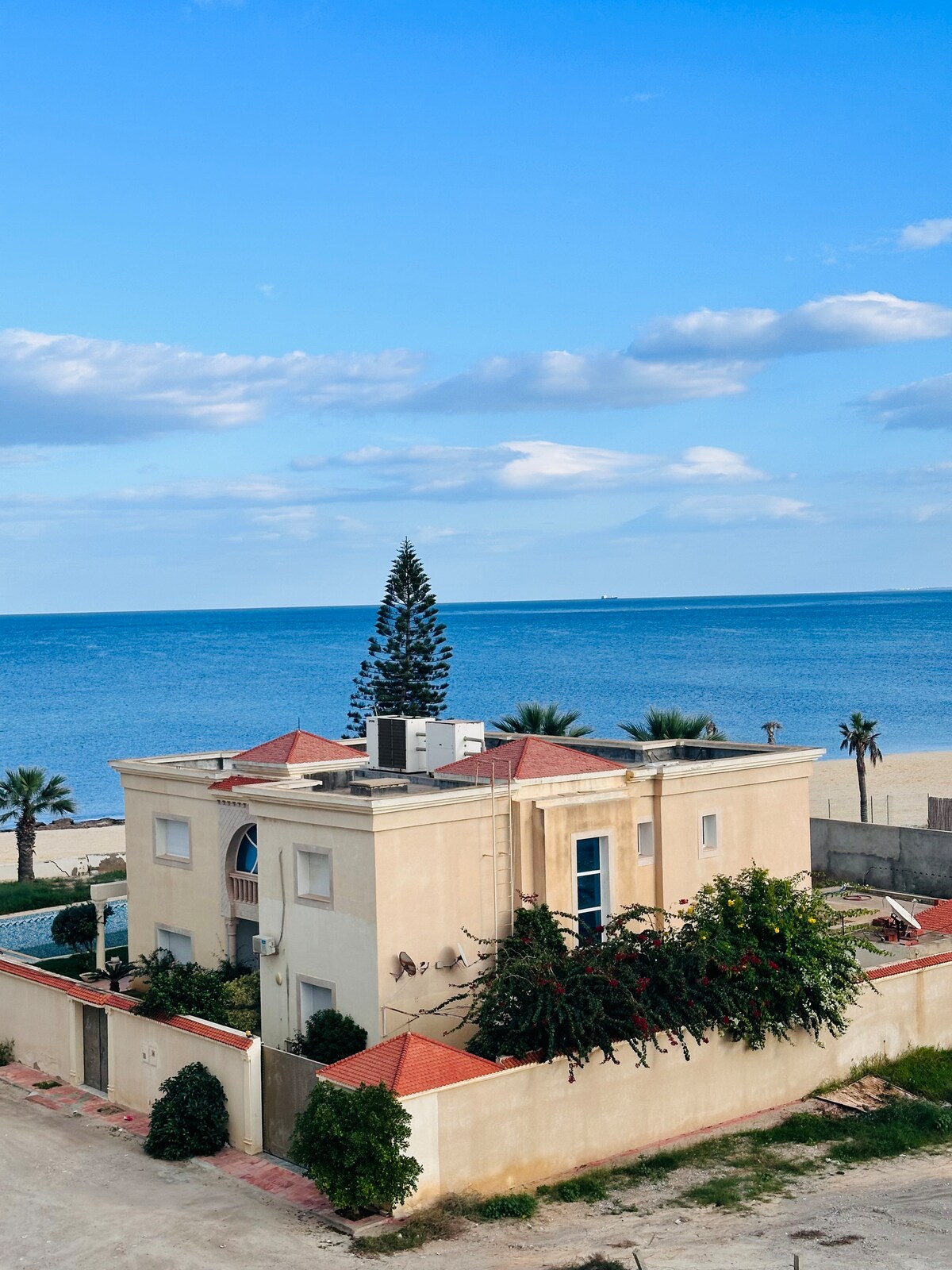 A beautiful natural environment, stunning sea views, a large warm and bright apartment with a large terrace to admire the waves and equipped with a movable rocking chair and barbecue to enjoy the outdoors. Our exceptional apartment is located in the heart of the tourist region close to: Port El Marina Kantaoui, golf course 10 minutes from the Sousse Mall shopping center Close to hotels, restaurants...