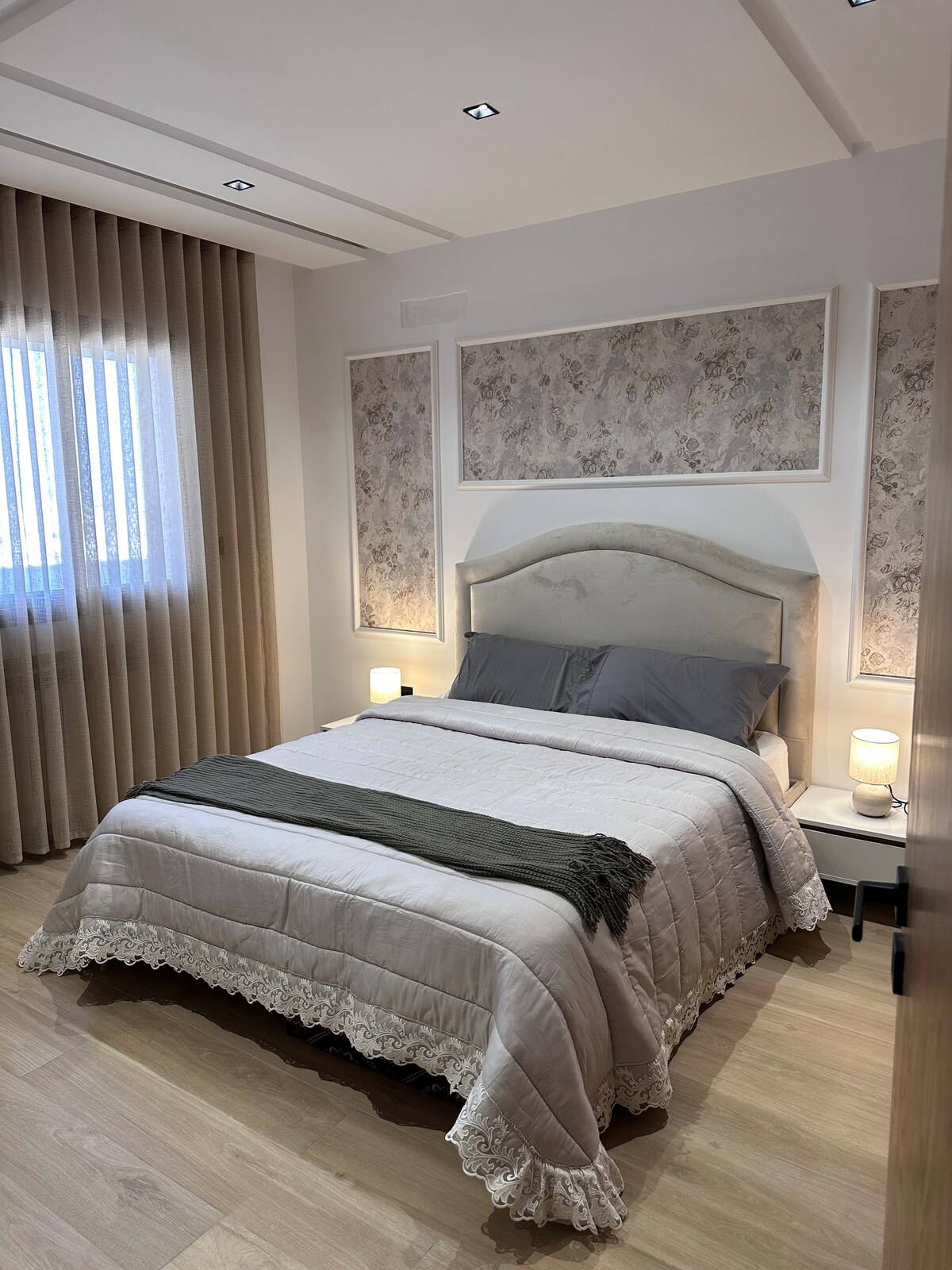 Modern 1-bedroom flat in the heart of Sousse with stunning sea view. Includes a double bed and a sofa bed, ideal for up to 4 guests. Enjoy high-speed Wi-Fi, a big-screen TV, and a fully equipped kitchen. Surrounded by bars, cafés, and restaurants, and just steps from the beach. Secure basement parking included. Perfect for a relaxing stay close to everything Sousse has to offer.