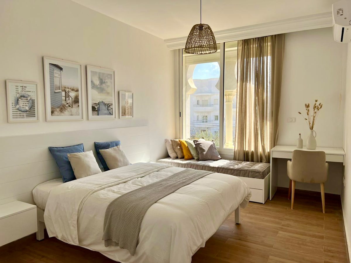 Welcome to your family-friendly escape in Cap Kantaoui – just 2 mins from the beach! Enjoy a cozy apartment with balcony, shared pool, smart self check-in, fast Wi-Fi, coffee station, washing machine, and fresh linens. Located in a secure residence near kantaoui Marina, Mall of Sousse, shops, and cafés. Book now for a relaxing seaside stay!