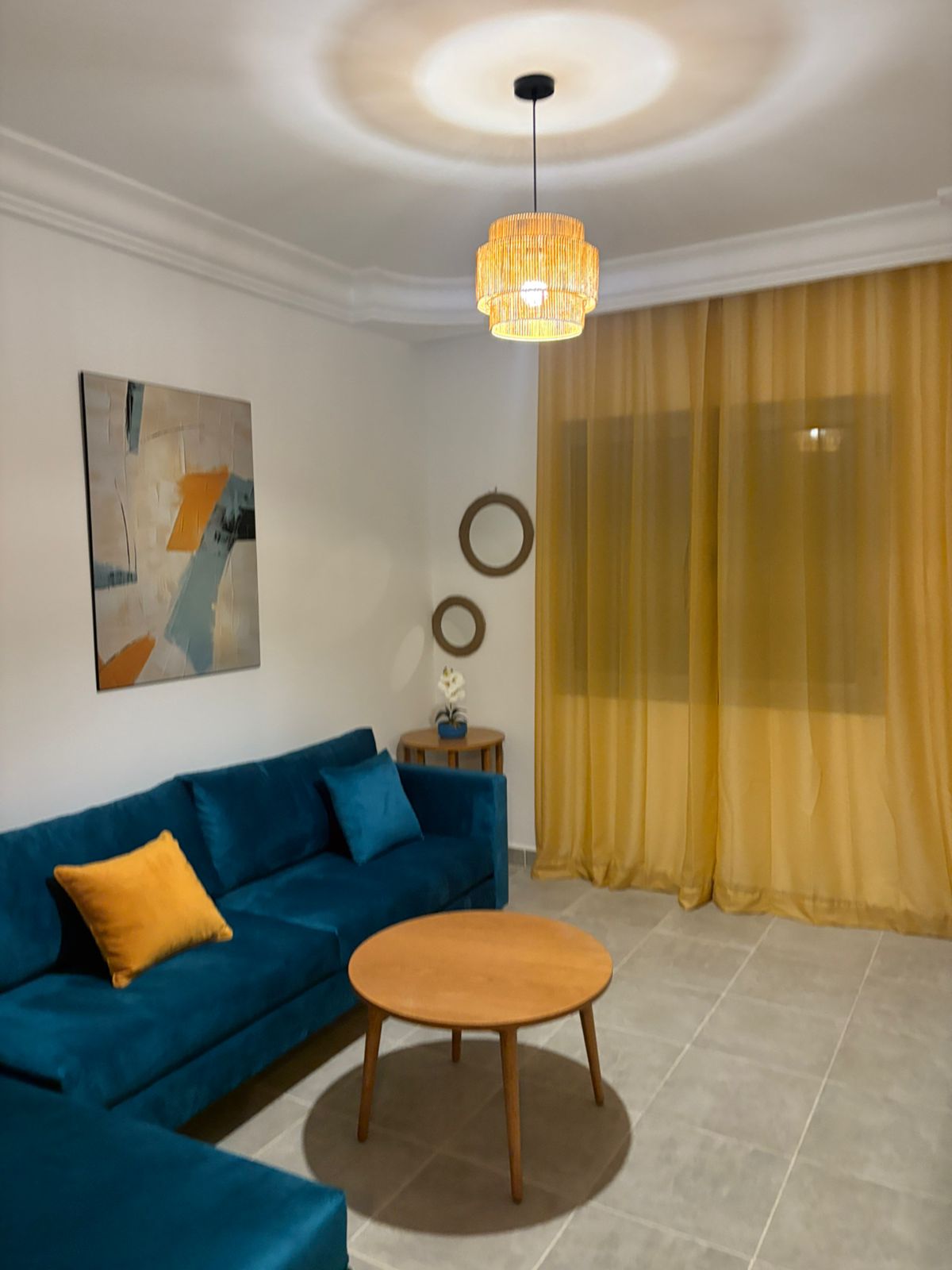 notre charmant appartement offre une vue imprenable sur la mer! Ce cozy logement d'une chambre peut accueillir confortablement jusqu'à quatre personnes Vous apprécierez le salon spacieux idéal pour se détendre après une journée à la plage, équipé d'une télévision et d'une connexion Wi-Fi. La cuisine entièrement équipée. Que vous soyez ici pour un séjour détente ou pour explorer, notre appartement est l'endroit parfait pour vos vacances à Sousse (El kantaoui) Nous avons hâte de vous accueillir !