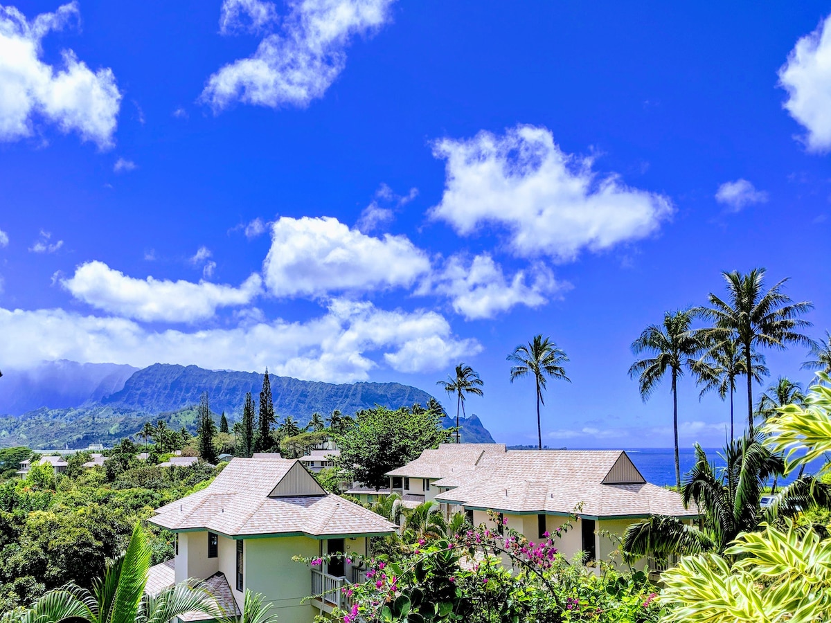 Brand New Listing at the Hanalei Bay Resort. Wake up to breath taking views of the Hanalei bay, waterfalls and the amazing lush green mountains of the garden island. Along with the amazing scenery you will also have access to pools, hot tubs, tennis courts, private beach access, weight room facilities and enjoy live music every night at the Happy Talk Lounge. All of theses activities are just a minutes walk from your front door or enjoy a relaxing golf cart shuttle ride.