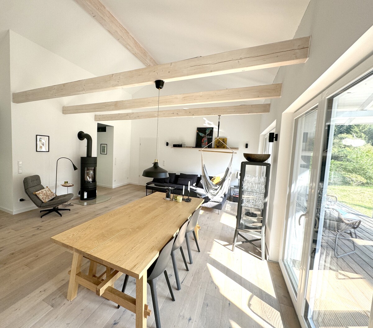 Back to nature - living in a stylish wooden house, surrounded by nature. Away from the hustle and bustle. On the Heidschnucken hiking trail, lies this gem. Only 30 minutes from Hamburg. The Finnish log cabin has a covered veranda from which you can see the 3000 m² forest. In the area you can find cycling and hiking trails. Ideal for nature-loving people. With us, the coffee's on the house!