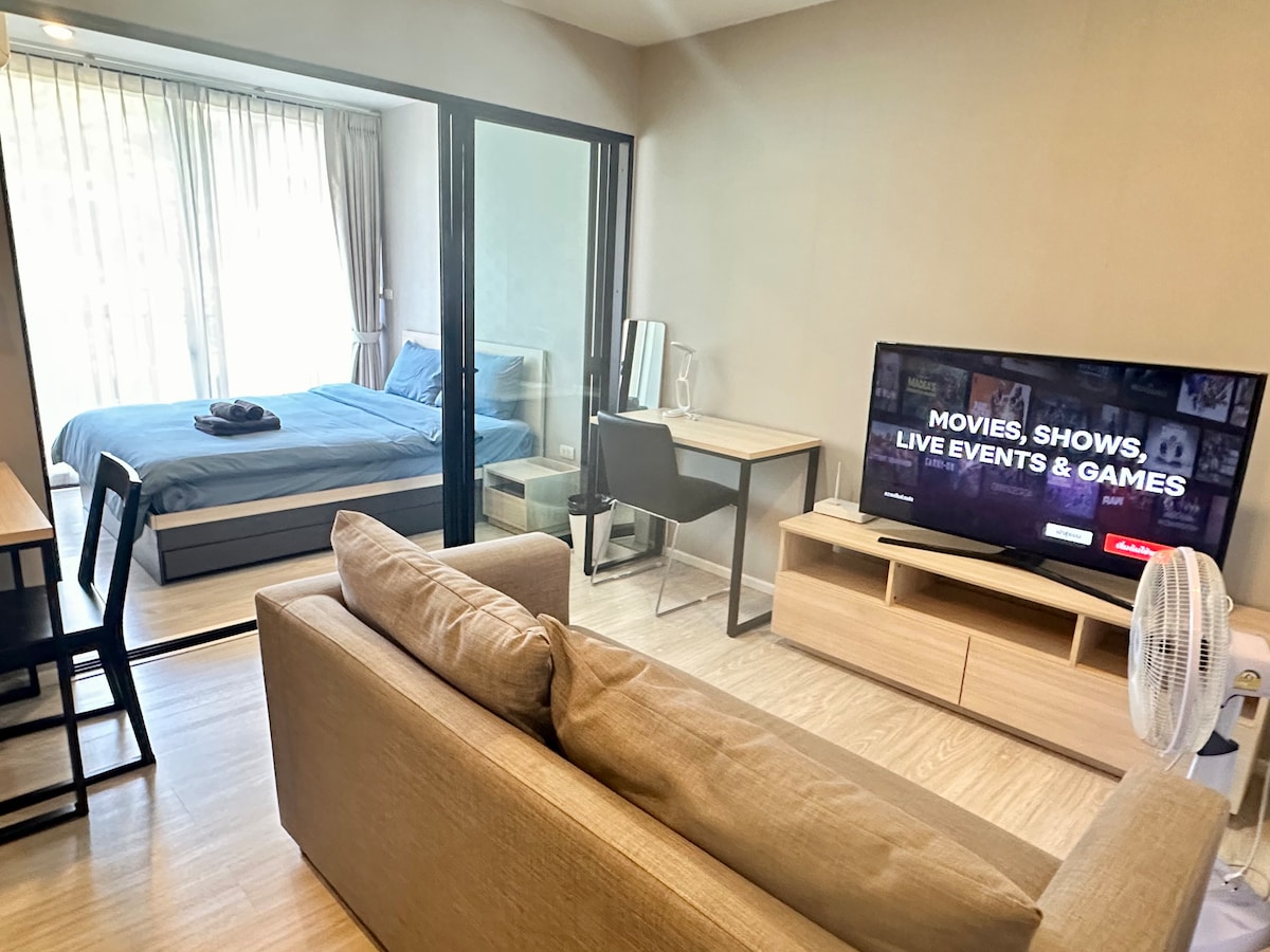 Relax in a stylish 31 m2 room with stunning views of Doi Suthep mountain in the heart of Chiang Mai's vibrant Nimmanhemin area. The room is fully furnished and equipped with everything you need for a comfortable stay, including high-speed internet, kitchenette, washing machine After exploring Chiang Mai's many attractions, relax by the rooftop pool or challenge yourself in the on-site gym. This place is the perfect place to stay for travelers seeking a modern escape in the heart of Chiang Mai.
