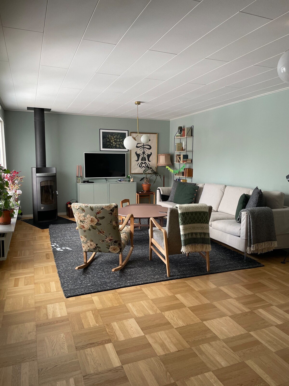Modern, charming, small but efficiently open-plan home/cottage on a quiet gravel road 500 meters from Söderby Brygga in Västerhaninge - halfway between Stockholm and Nynäshamn. Neighboring houses are within sight, but the location is still secluded. Two sleeping places in the loft via ladder and two sleeping places in sofa bed. TV, WiFi and parking with access to charging station. Heating/cooling with air-to-air heat pump.