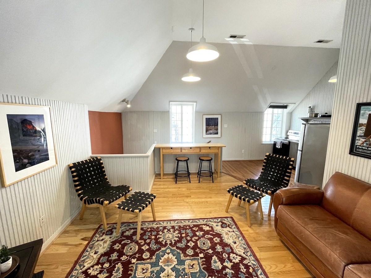 Welcome to the Yellow Tiger’s Den, a private, tucked-away guesthouse filled with bold color, thoughtful design, and a little Richmond edge. Set above a spiral staircase for total privacy, this sunny studio blends mid-century modern style with curated yellow accents, a cozy private patio, and everything you need for a relaxed stay. Located in Richmond’s historic Battery Park neighborhood, you’re minutes from the city’s growing food scene, local attractions, and easy highway access.