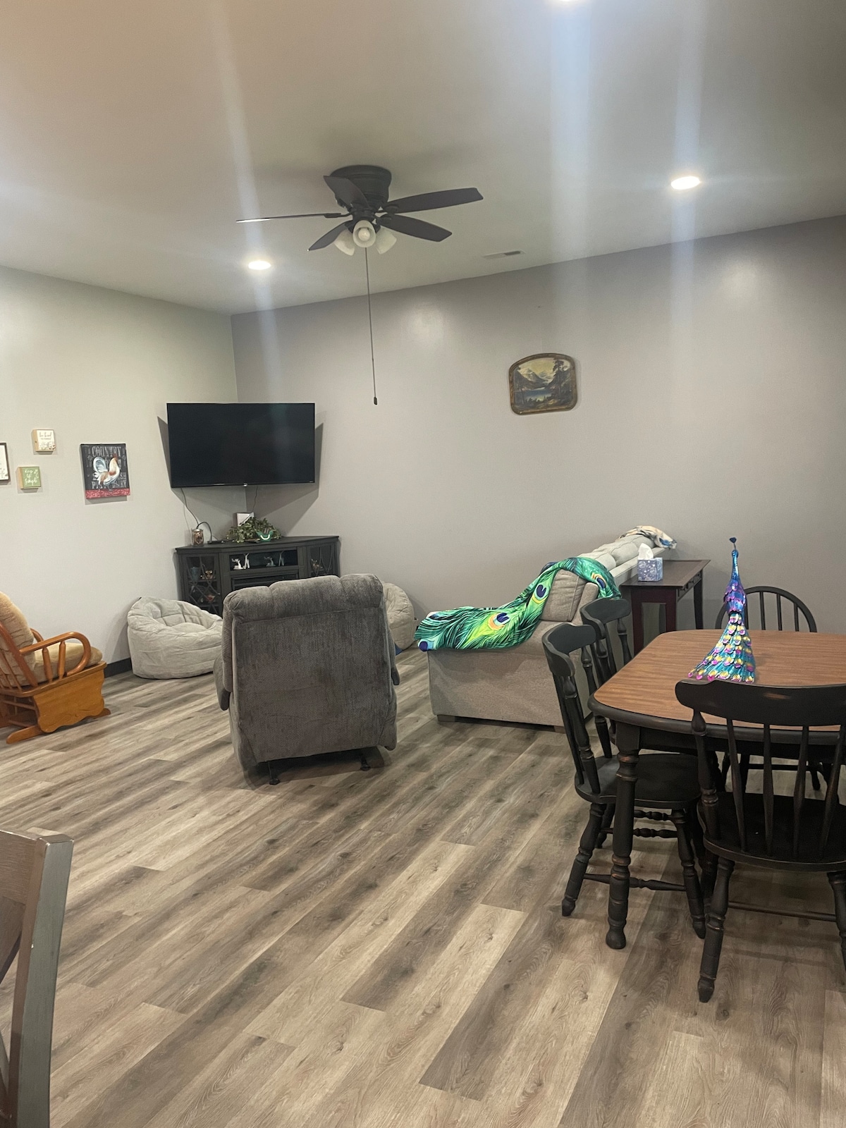 Reconnect with loved ones in this family-friendly place. Convenient to North Fork Recreation Area at Rough River Lake. Less than 10 minutes from US 60 Dragway in Hardinsburg. 15 minutes from Rough River Dam State Resort Park. Home offers bedroom with queen bed, bedroom with twin bunkbed and trundle, sleeper sofa and futon. Air mattress and pack and play also available for guest convenience. Outside you will find circle drive allowing for plenty of parking. Short walk to lake access.