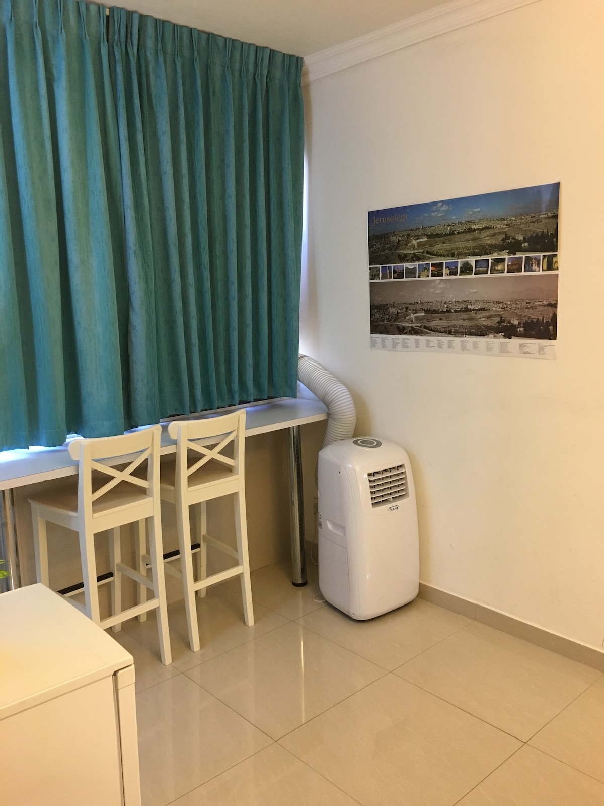 This stylish apartment is on a cul-de-sac right off magical Ha-Nevi'im Street, home to the famous Jerusalem landmarks of Davidka Square, the Italian Hospital and Tabor House. Be enchanted by the ancient stone homes surrounded by gardens and walls, walk over to the nearby Old City, or stroll the lively pedestrian-only Ben Yehuda Street. You can catch the Jerusalem Light Rail to the Central Bus Station, where you can ride the Tel Aviv-Jerusalem railway to Ben Gurion airport in under half an hour.