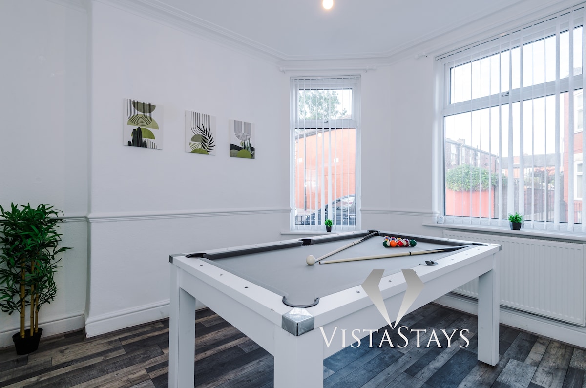 Welcome to our Newly Refurbished Home in Manchester! This cosy yet Modern home is perfect for you! Whether you're here for business, leisure, or a mix of both. Property Highlights: ★ 3 Double Beds ★ or 4 Single Beds and 1 Double Bed ★ Free High-Speed WiFi for your convenience ★ Professionally Cleaned for a pristine stay ★ Fully Equipped Kitchen for all your cooking needs ★ Modern Home, Newly Refurbished ★ Free On-Street Parking